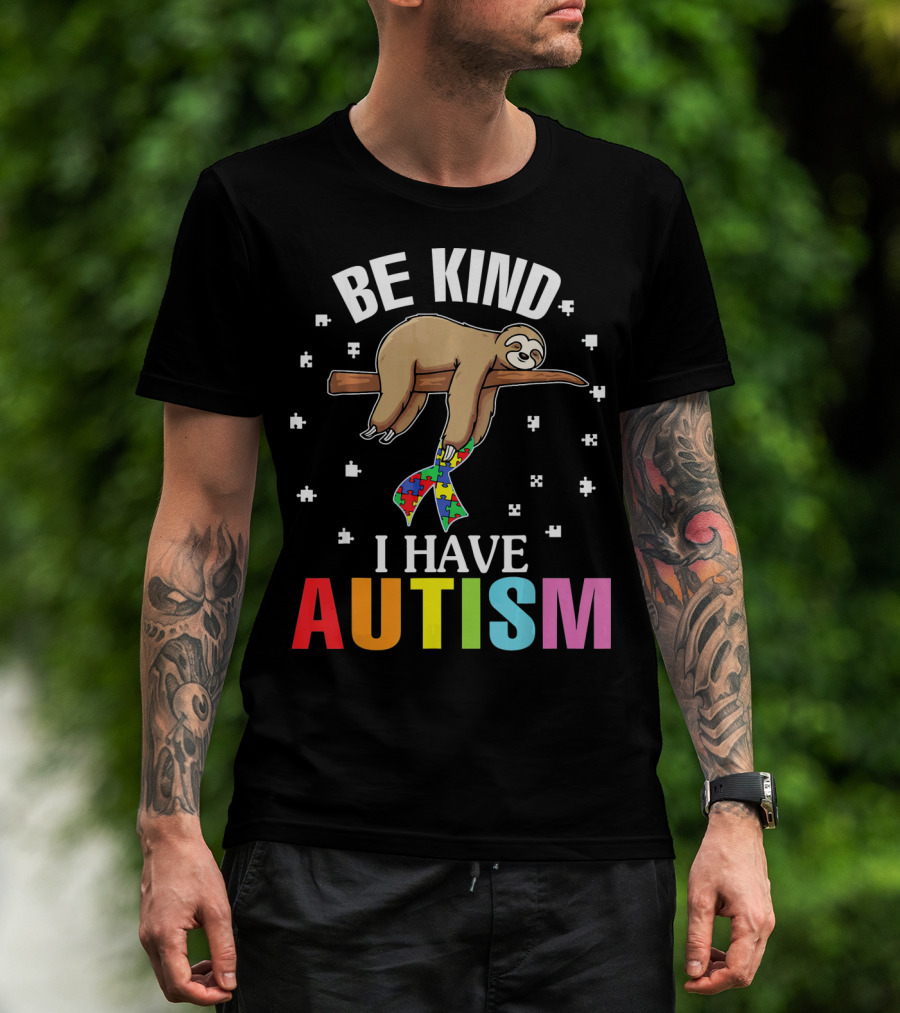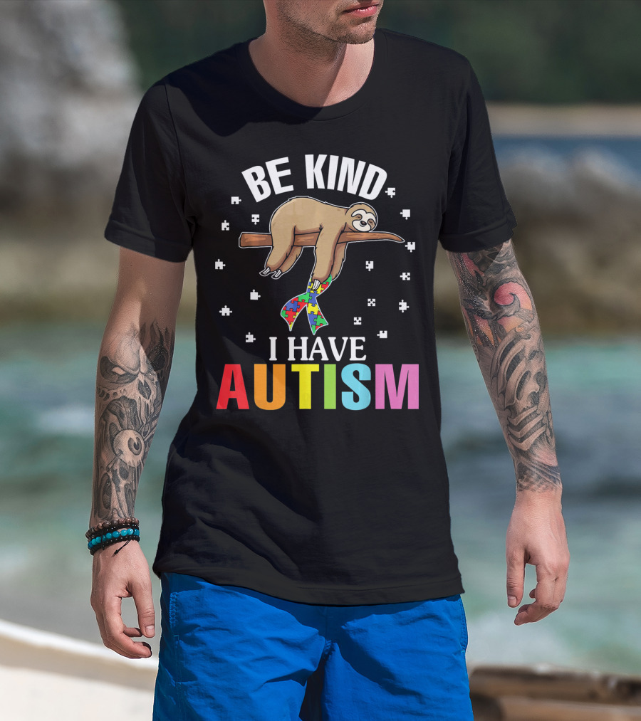 Be Kind Cute Sloth With Puzzle Ribbon I Have Autism T-Shirt