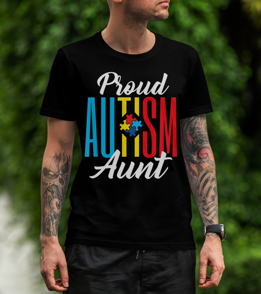 Proud Autism Aunt Puzzle Piece Awareness T-Shirt