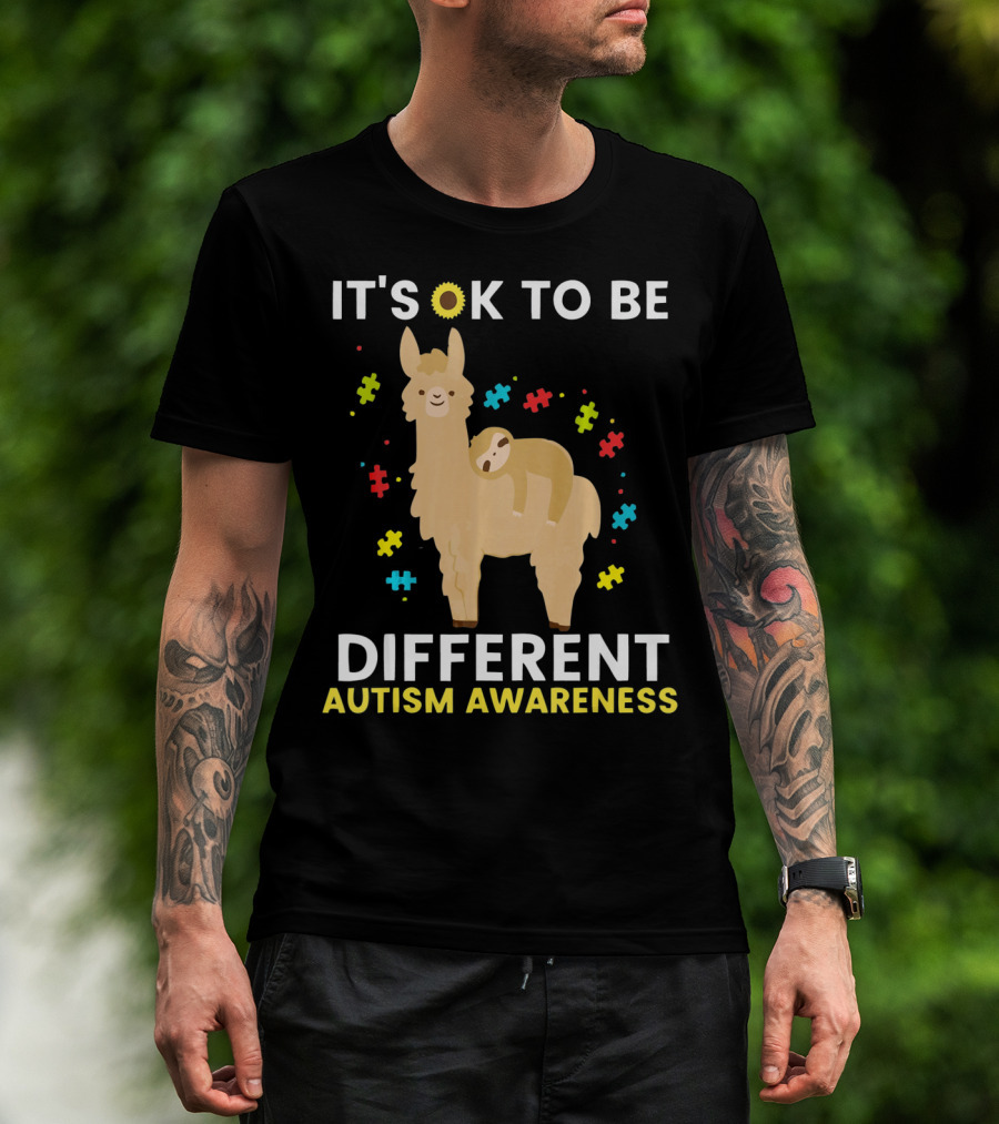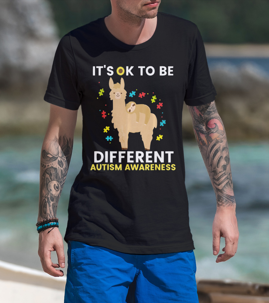 It's OK To Be Different Llama Sloth Autism Awareness T-Shirt