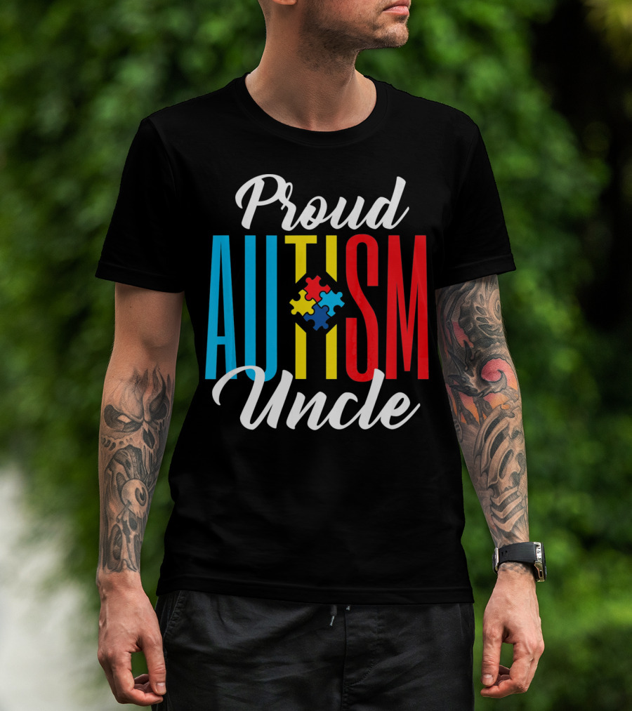 Proud Autism Uncle Puzzle Piece Awareness Support T-Shirt