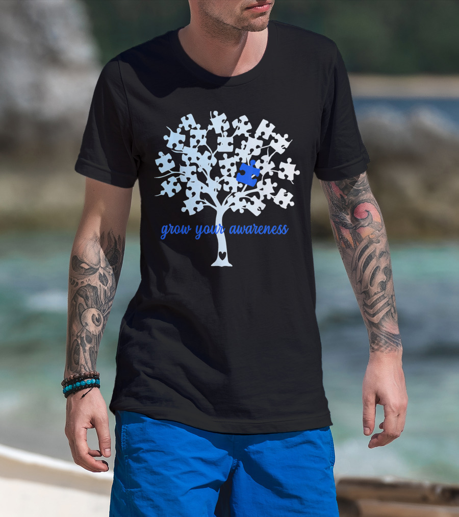 Grow Your Awareness Puzzle Tree Autism Heart T-Shirt