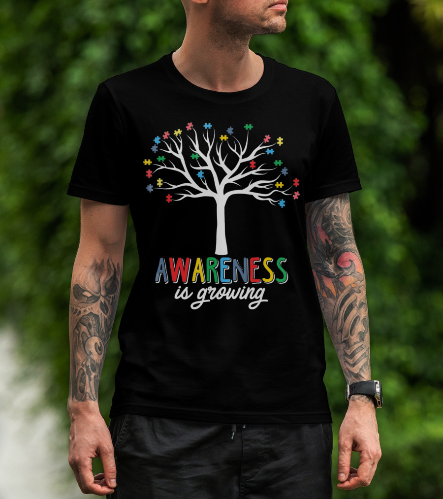 Awareness Is Growing Tree With Colorful Puzzle Pieces T-Shirt