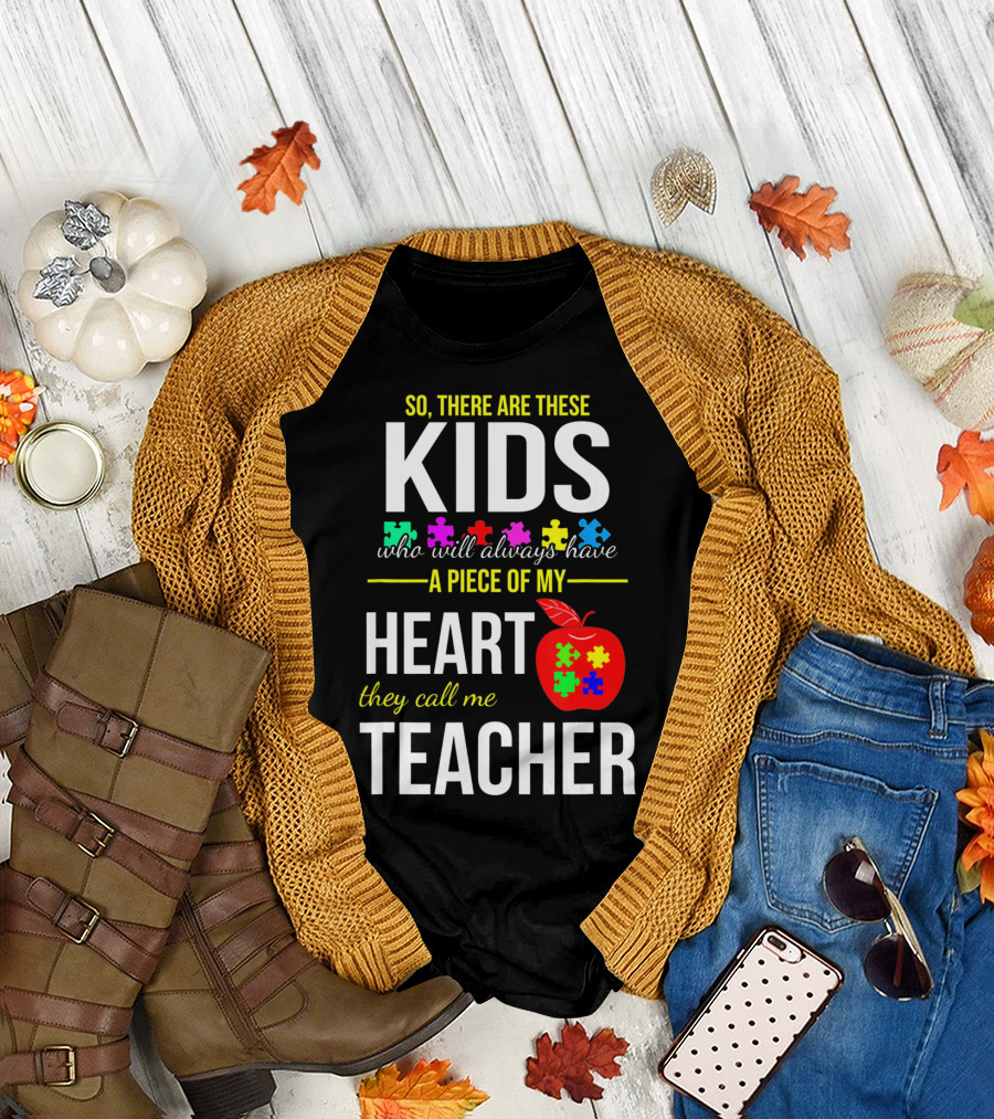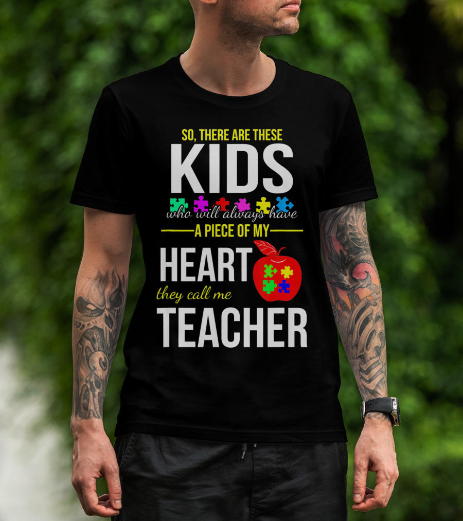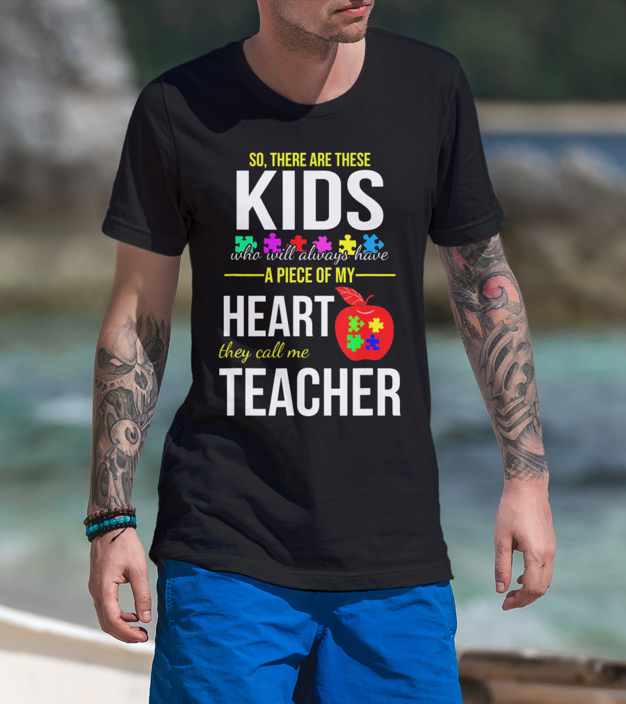 Kids Who Will Always Have A Piece Of My Heart They Call Me Teacher Autism Awareness Puzzle Pie T-Shirt