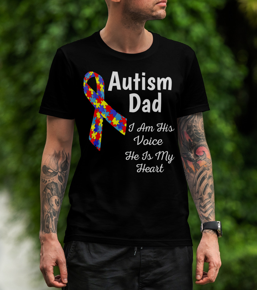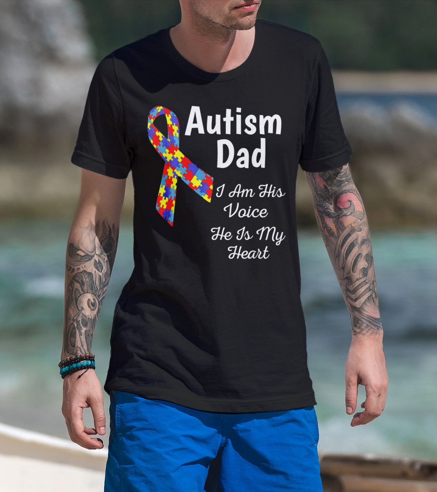 Autism Dad I Am His Voice He Is My Heart Puzzle T-Shirt