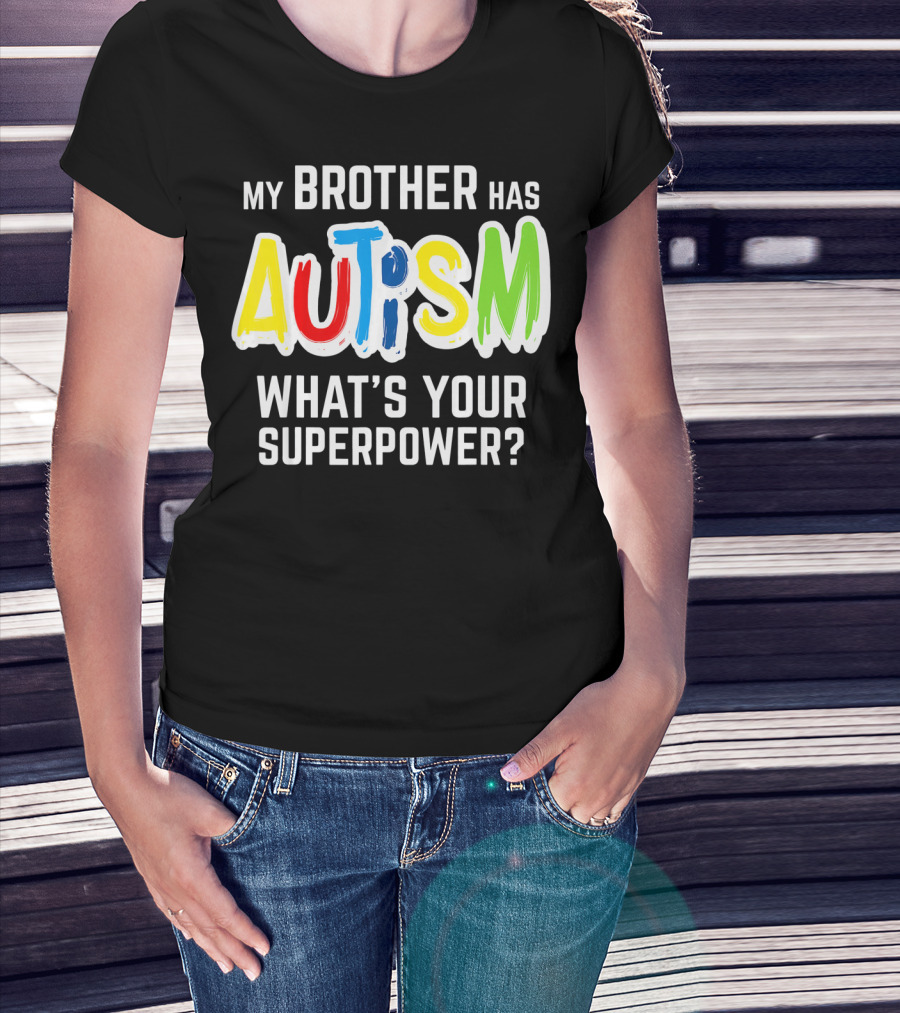 The My Brother Has Autism What's Your Superpower T-shirt is designed for everyday wear and a consistent fit. Fabric is pre-shrunk ring-spun cotton with durable stitching. See the size chart below for exact measurements.