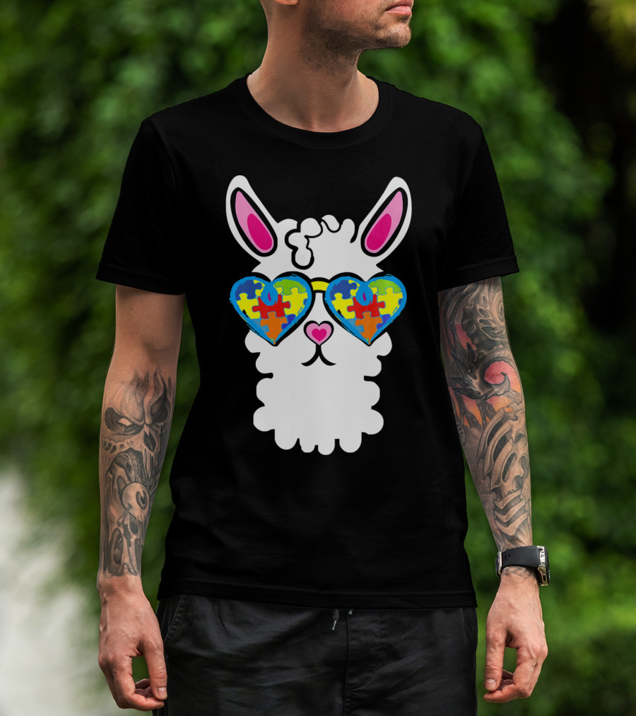 Autism Awareness Llama Heart Puzzle Sunglasses T-Shirt