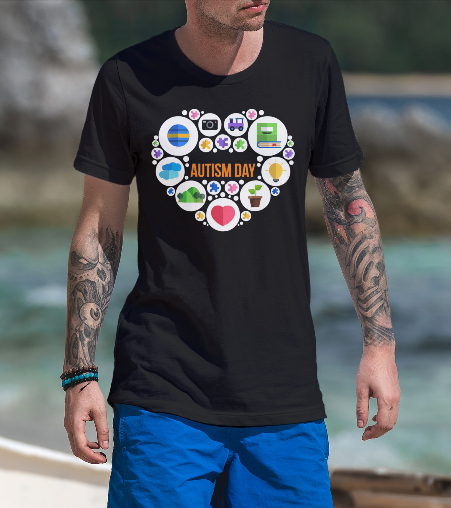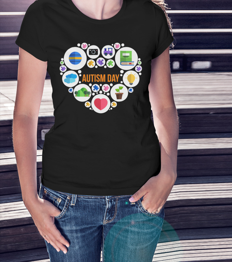 Autism Day Heart Icons Puzzle Pieces Awareness T-Shirt