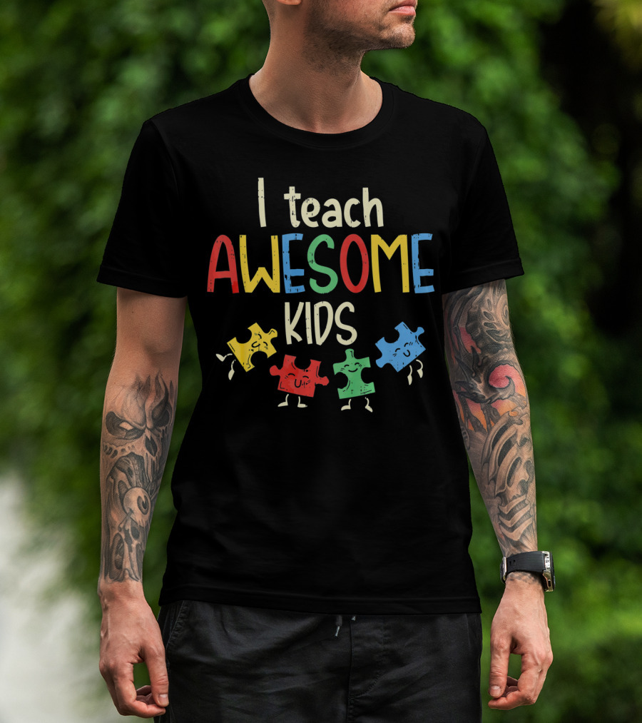 I Teach Awesome Kids Autism Special Puzzle Piece T-Shirt