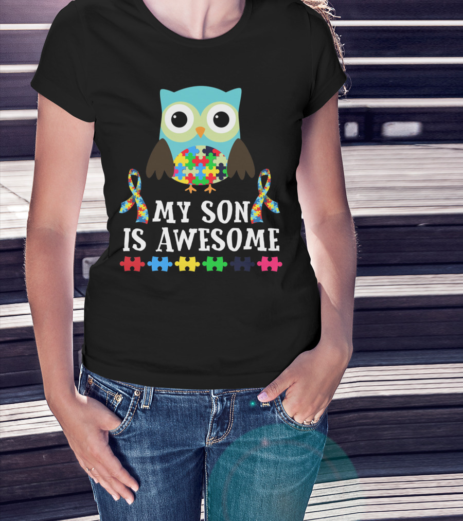 My Son Is Awesome Autism Awareness Puzzle Owl T-Shirt
