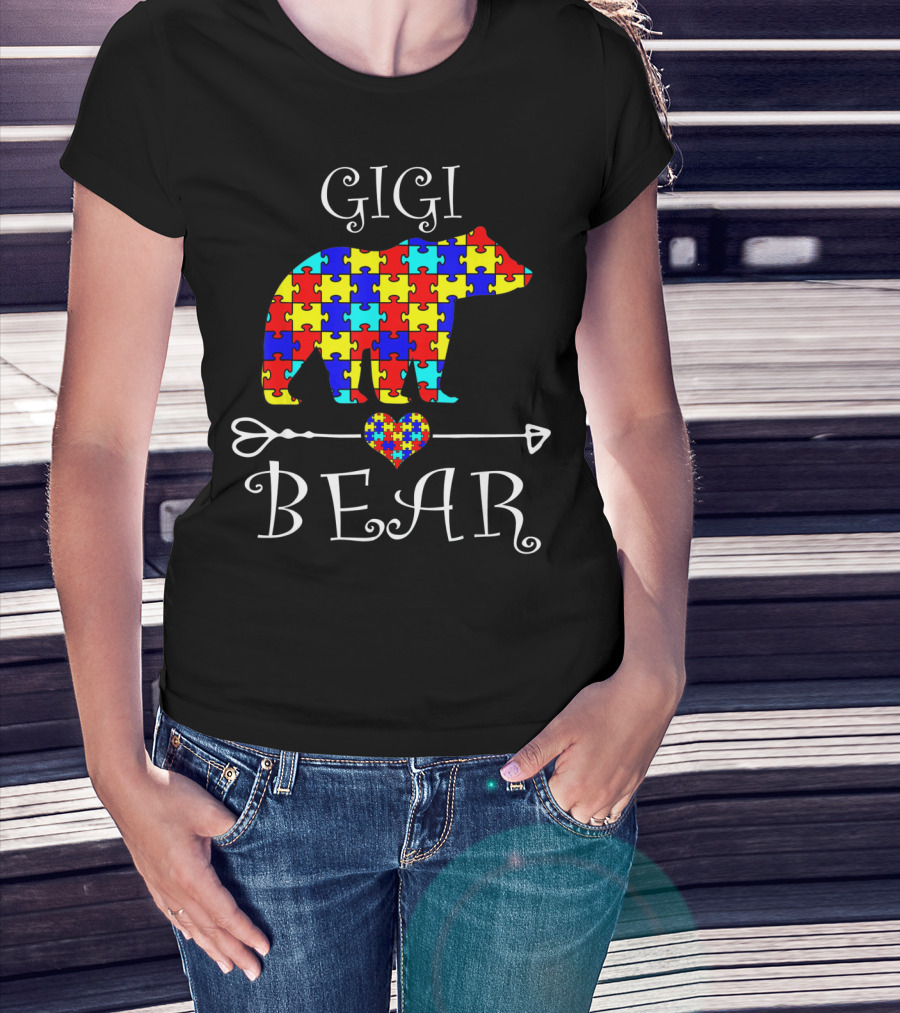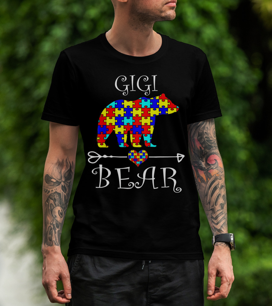 Gigi Bear Puzzle Arrow Heart Autism Awareness T-Shirt