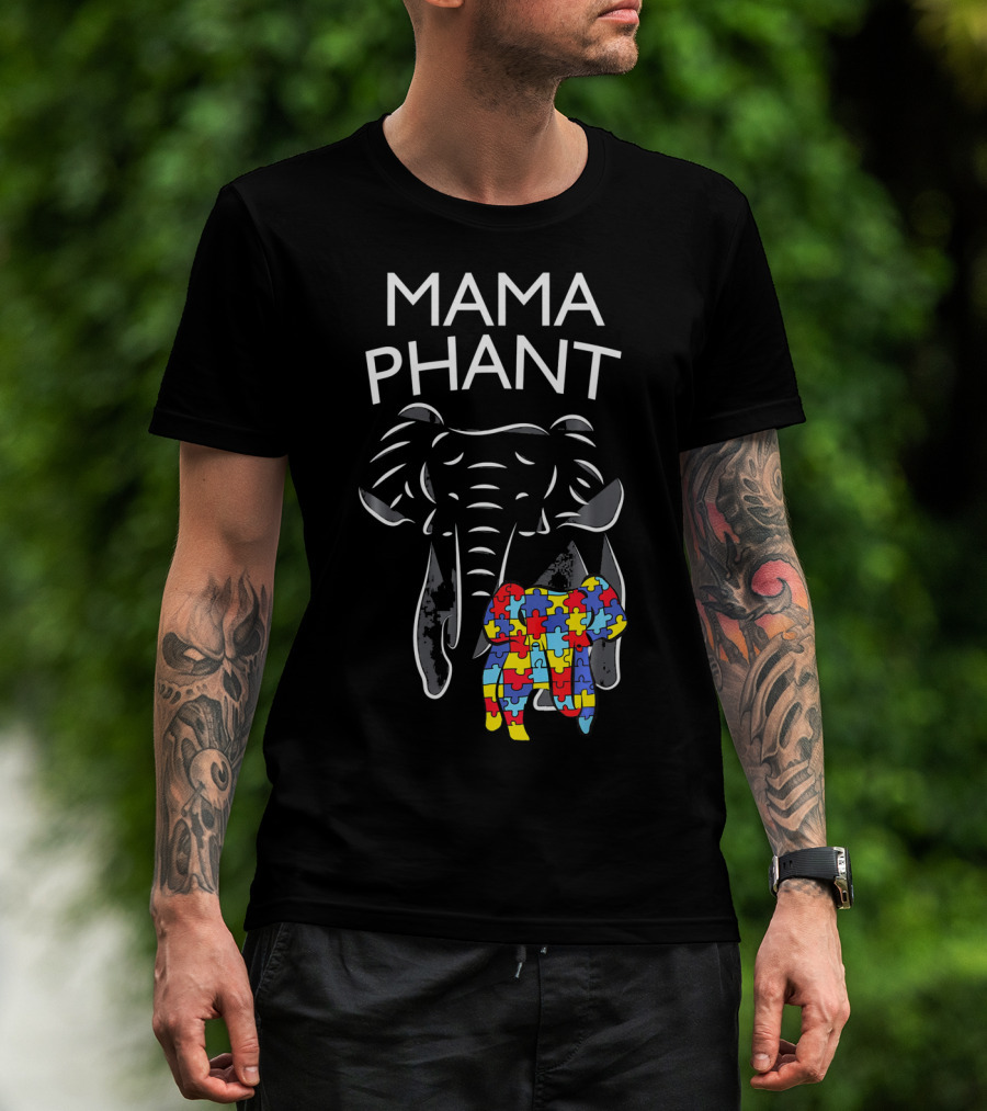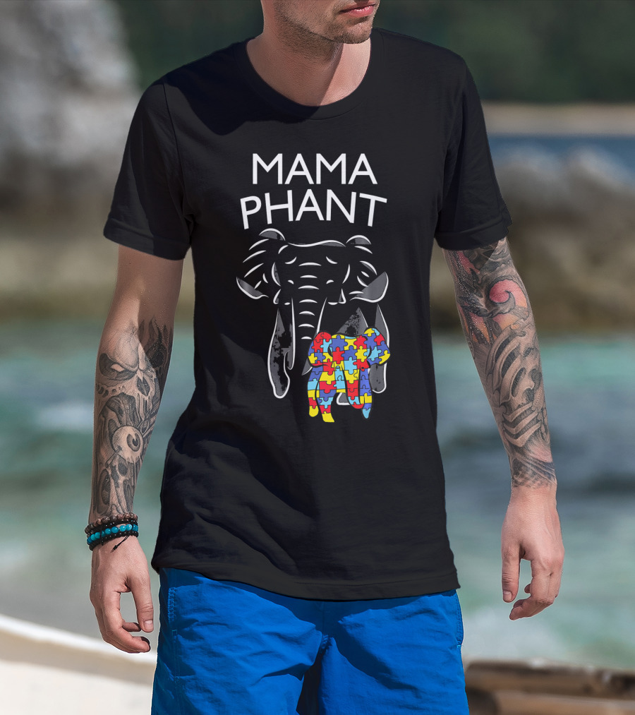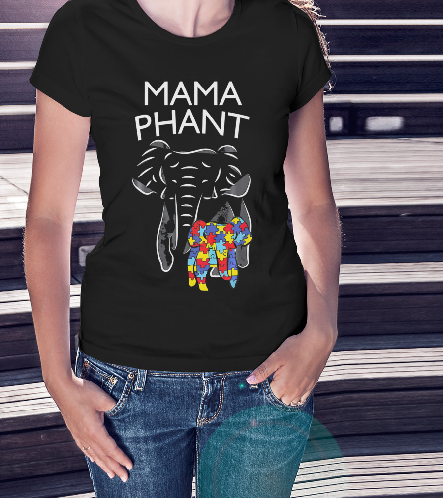 Mama Phant Autism Awareness Puzzle Elephant T-Shirt