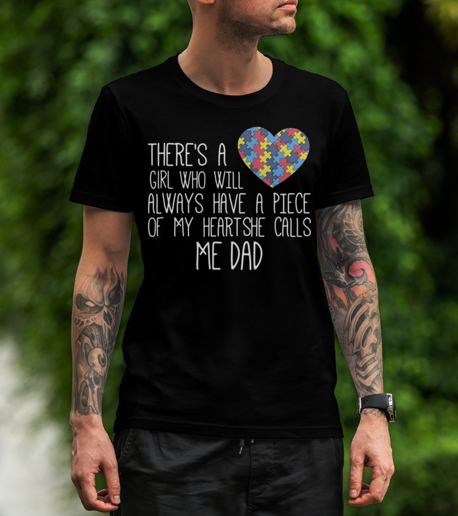 There's A Girl Who Will Always Have A Piece Of My Heart She Calls Me Dad Puzzle Heart Autism Awareness T-Shirt
