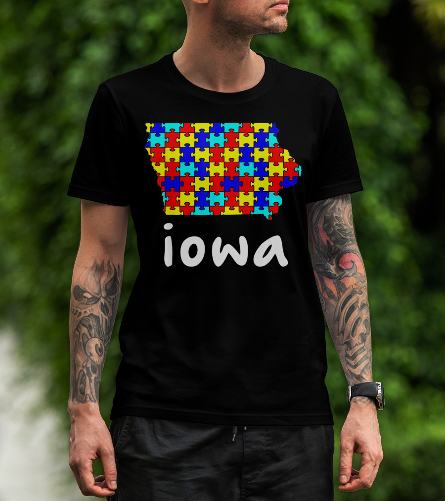 Iowa Puzzle Autism Awareness Ribbon T-Shirt