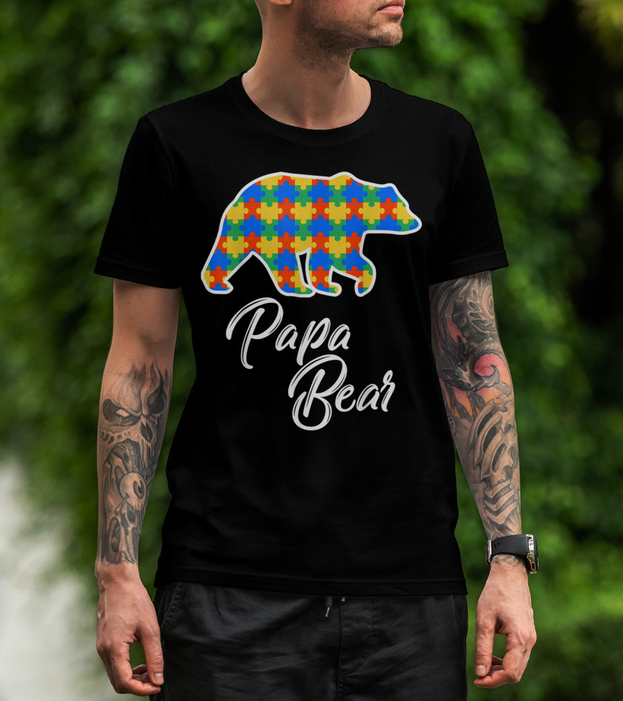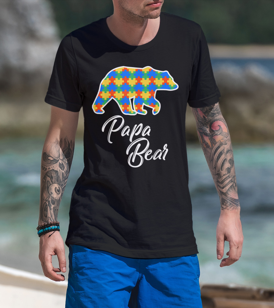 Papa Bear Autism Puzzle Awareness T-Shirt