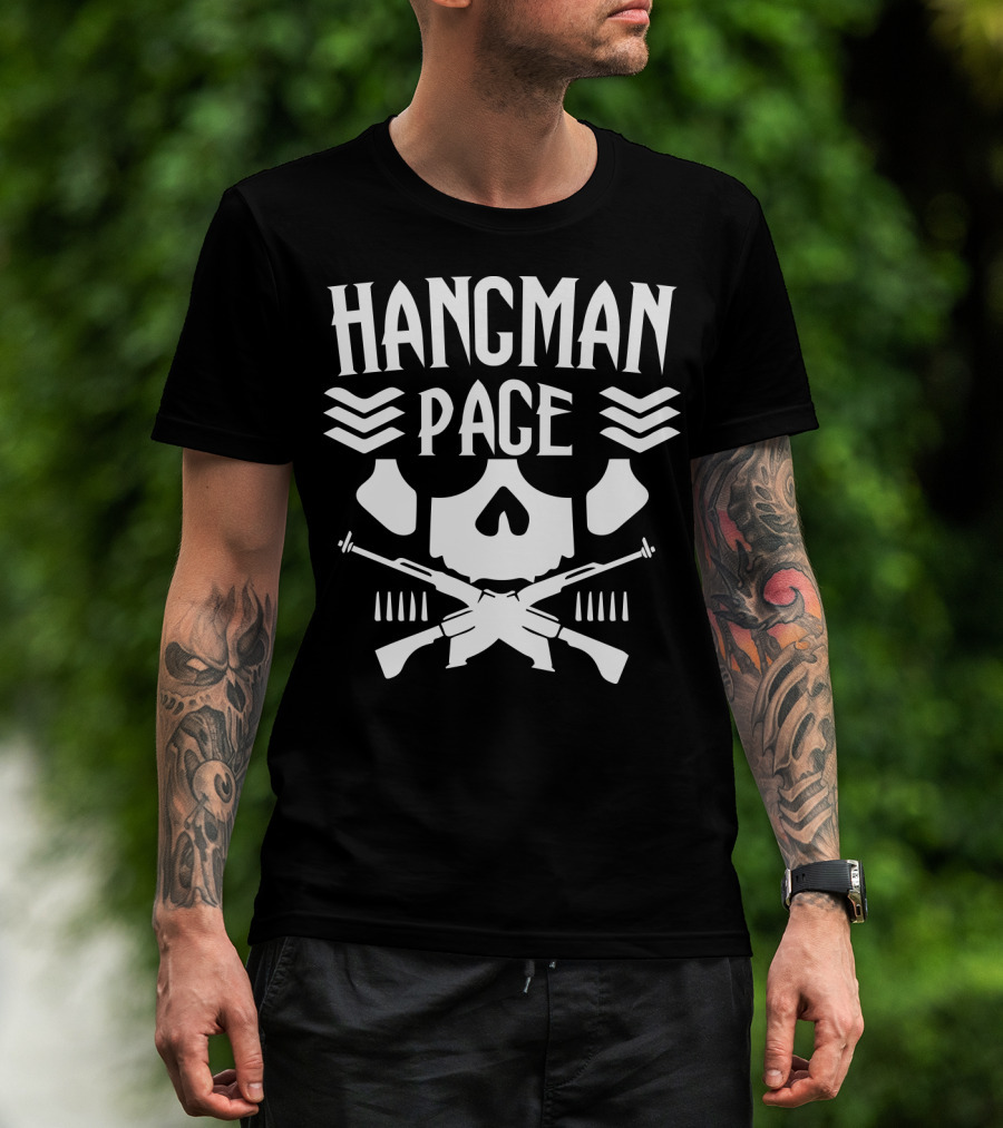 HANGMAN PAGE Skull Crossed Guns Chevrons T-Shirt