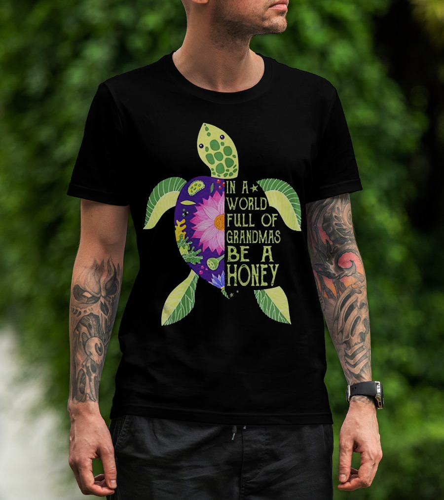 In A World Full Of Grandmas Be A Honey Floral Sea Turtle T-Shirt
