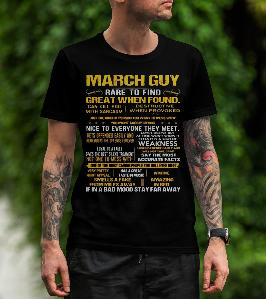 March Guy Rare To Find Great When Found Nice To Everyone They Meet Destructive When Provoked Gives Best Silent Treatment Smells A Fake From Miles Away T-Shirt