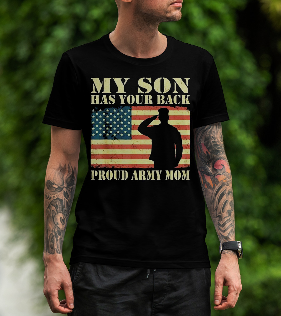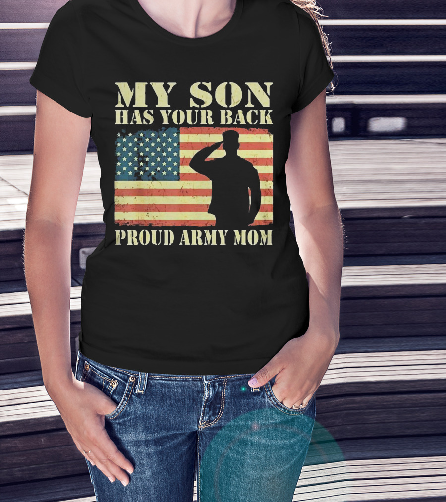 My Son Has Your Back Proud Army Mom Military Mother American Flag T-Shirt