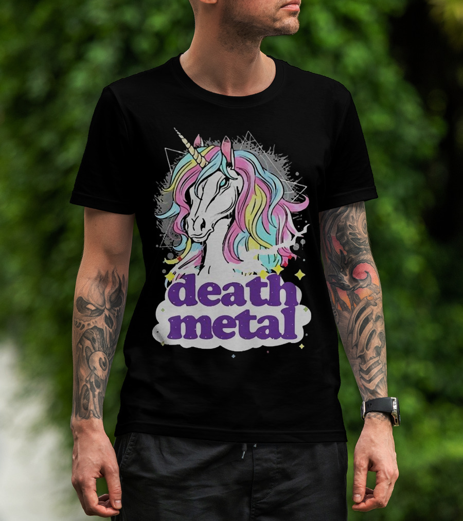 Unicorn Death Metal Rainbow Mane Fantasy T-Shirt