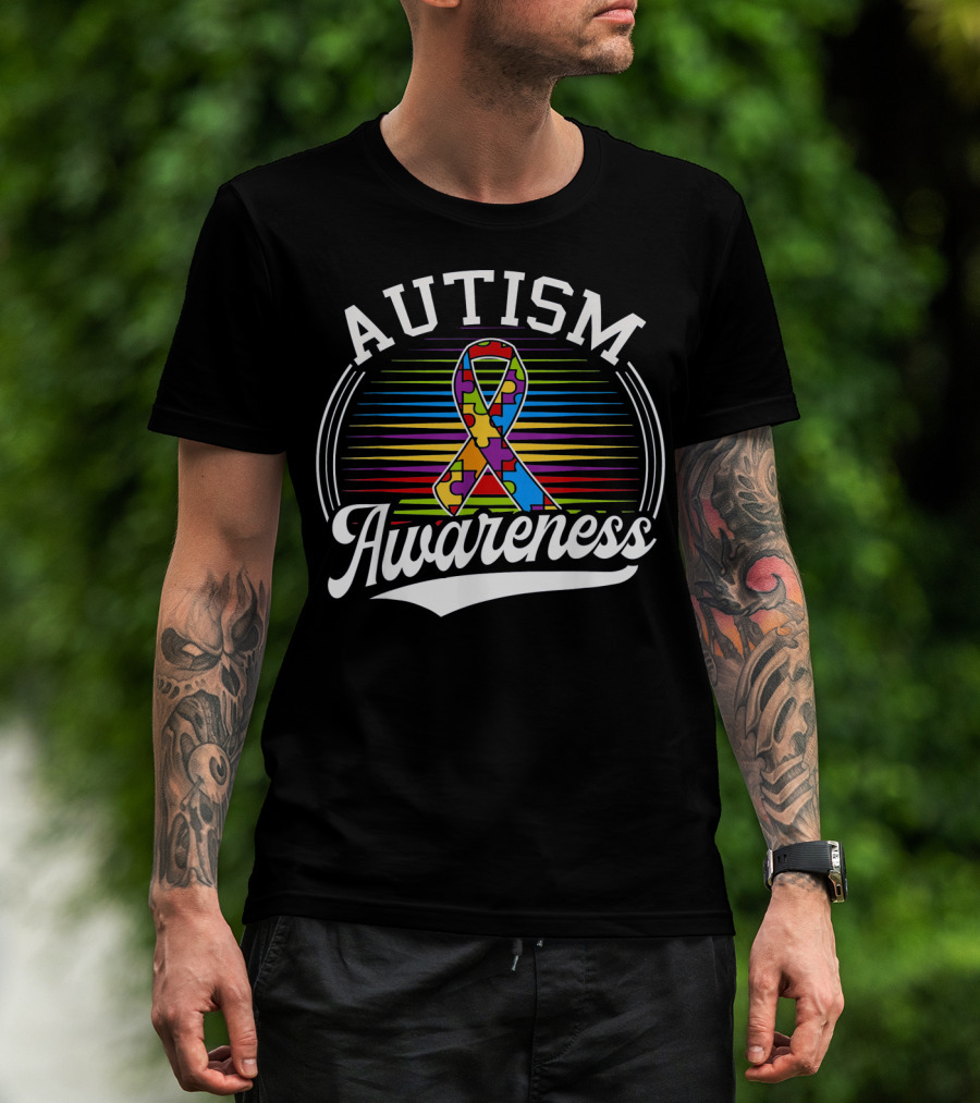 Autism Awareness Puzzle Ribbon With Colorful Lines T-Shirt