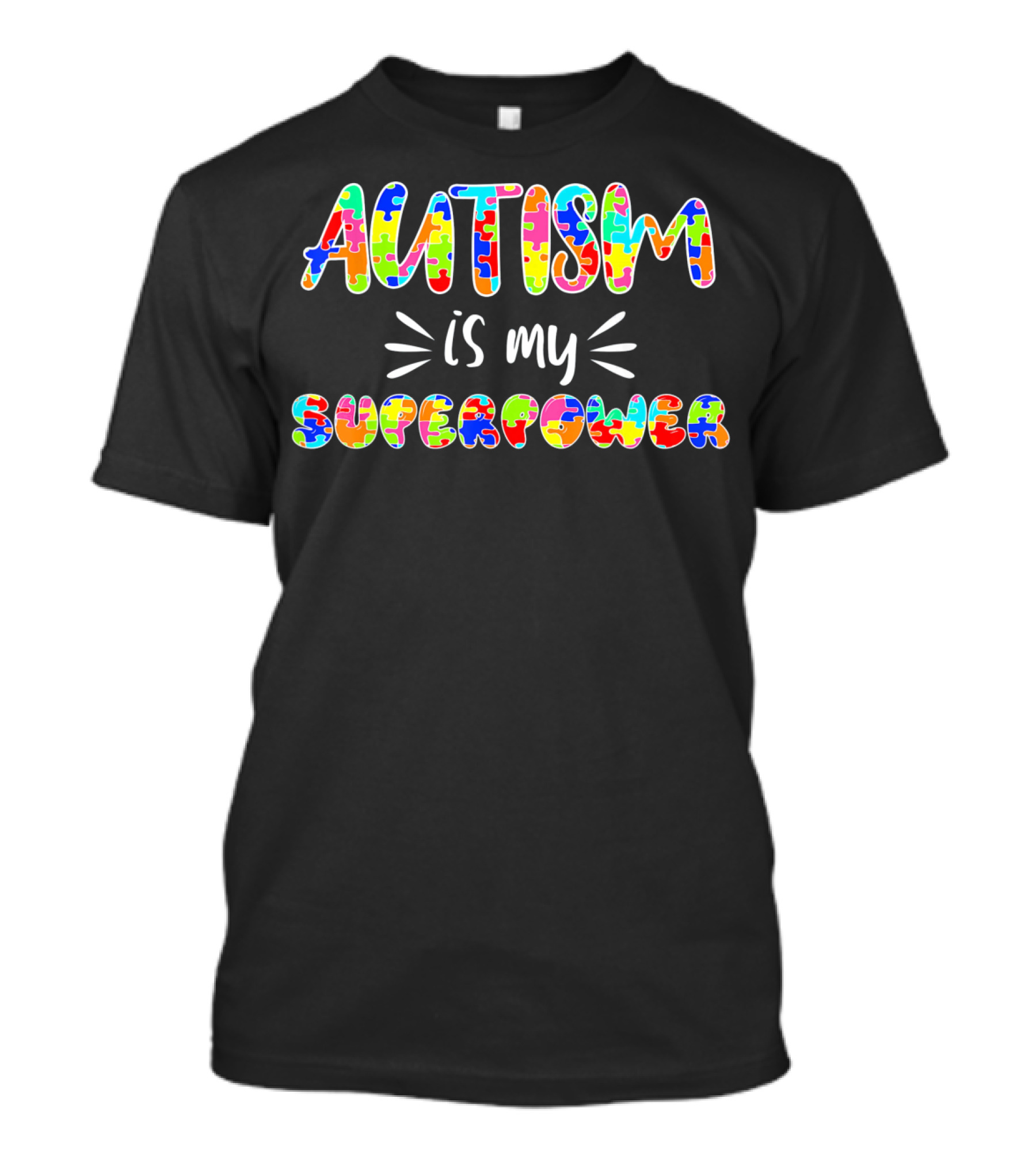 The Autism is My Superpower Puzzle Piece Colors T-shirt is designed for everyday wear and a consistent fit. Fabric is pre-shrunk ring-spun cotton with durable stitching. See the size chart below for exact measurements.