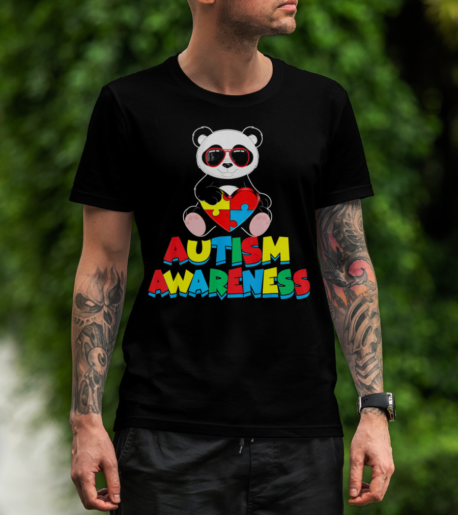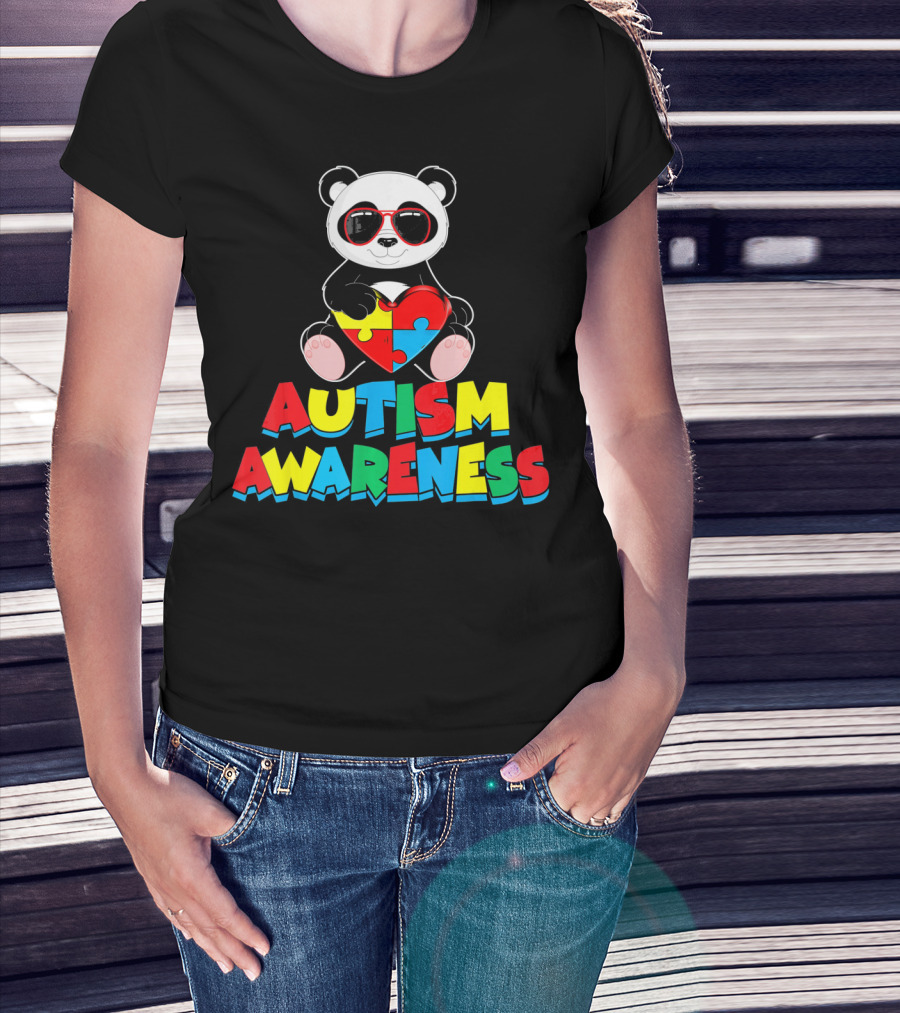 Autism Awareness Funny Panda With Heart-Shaped Puzzle T-Shirt