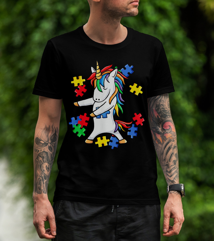 Autism Awareness Unicorn Puzzle Pieces Floss Dance T-Shirt