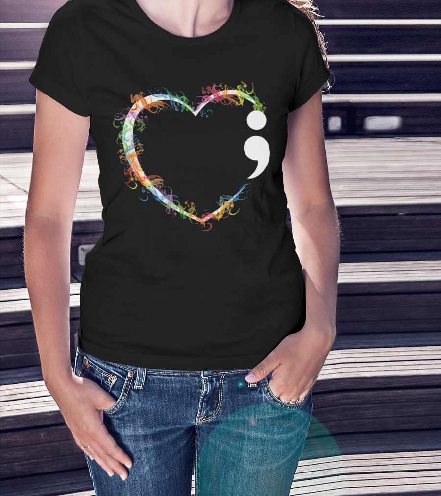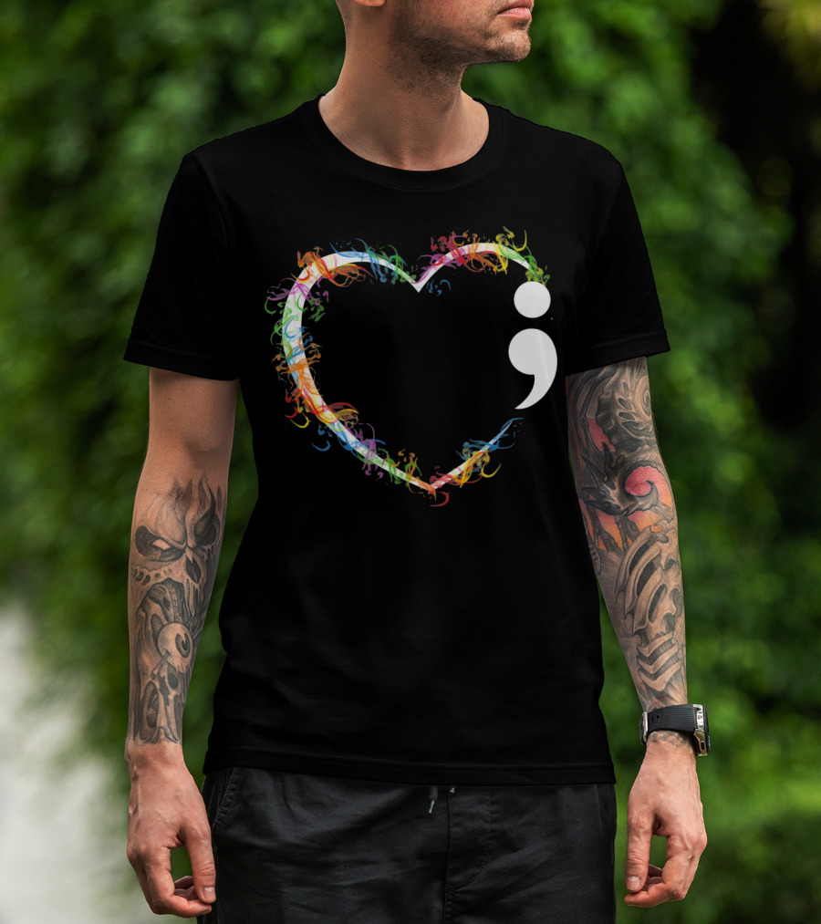 Heart Semicolon Rainbow Suicide Prevention Awareness T-Shirt