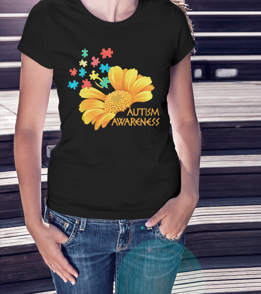 Sunflower Autism Awareness Puzzle Pieces T-Shirt