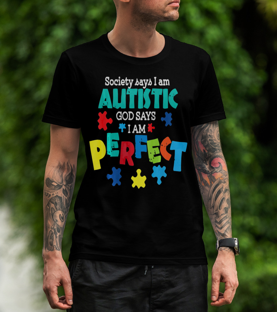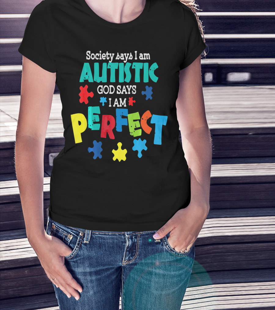 Society Says I Am Autistic God Says I Am Perfect Autism Awareness T-Shirt