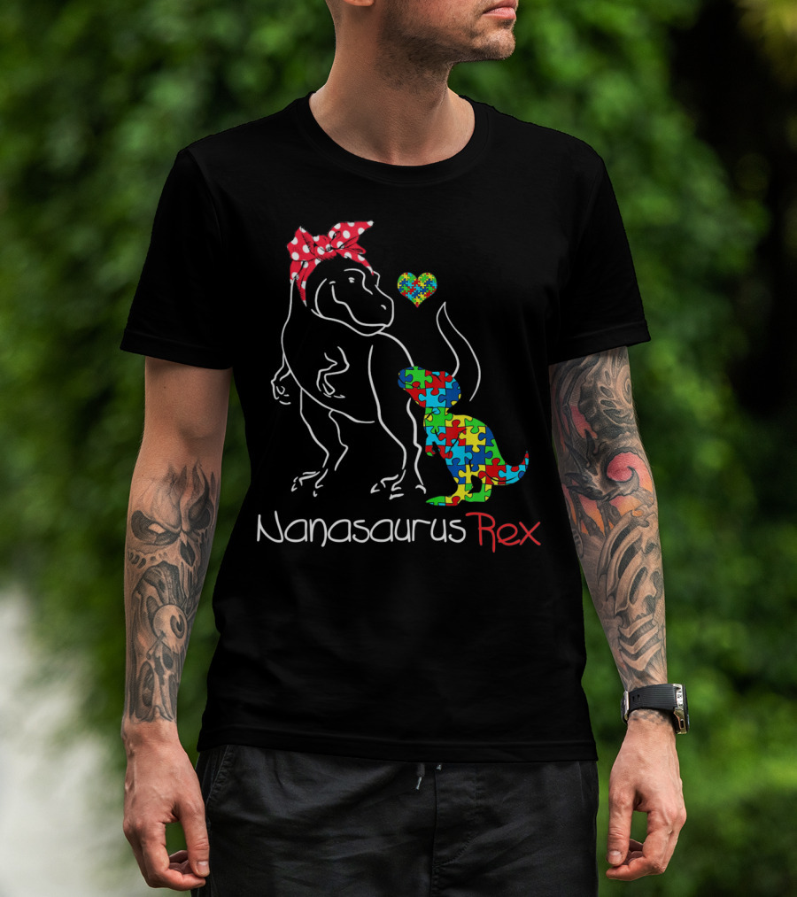 Nanasaurus Rex Dinosaur Autism Puzzle Heart T-Shirt