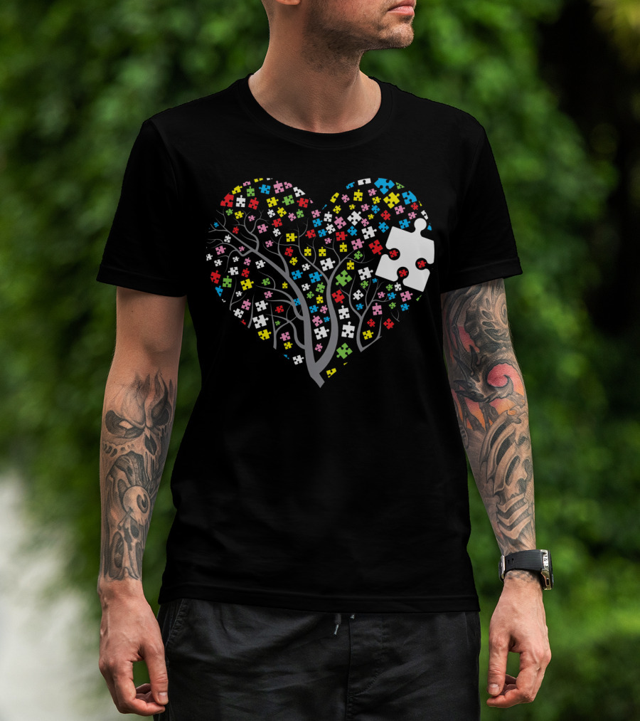 Autism Puzzle Heart Tree With Colorful Pieces T-Shirt