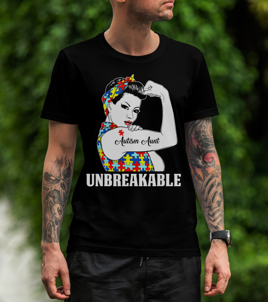 Unbreakable Autism Aunt Awareness Aun T-Shirt
