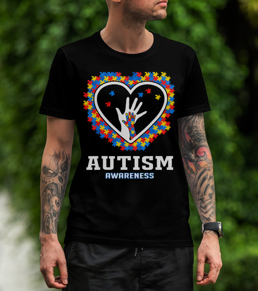Autism Awareness Heart Puzzle Hands T-Shirt