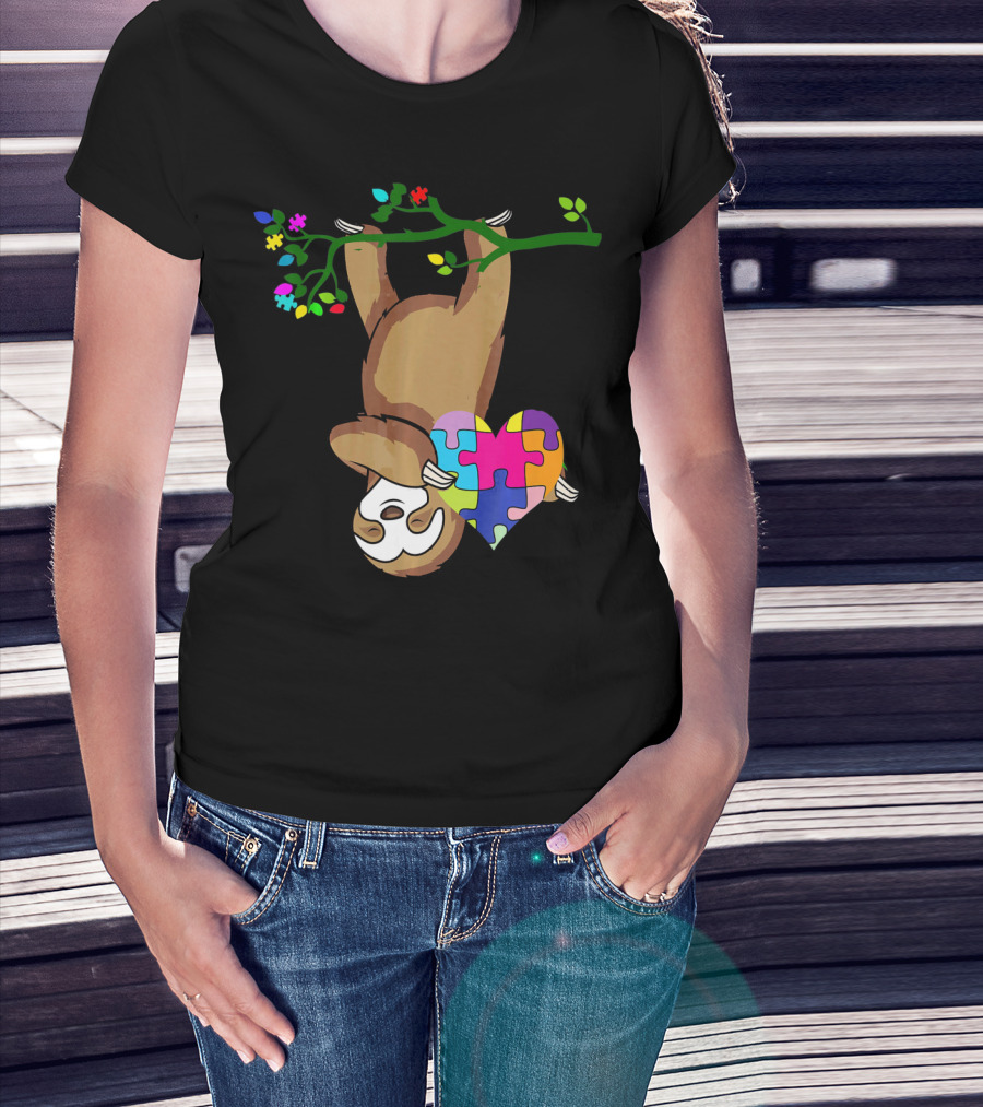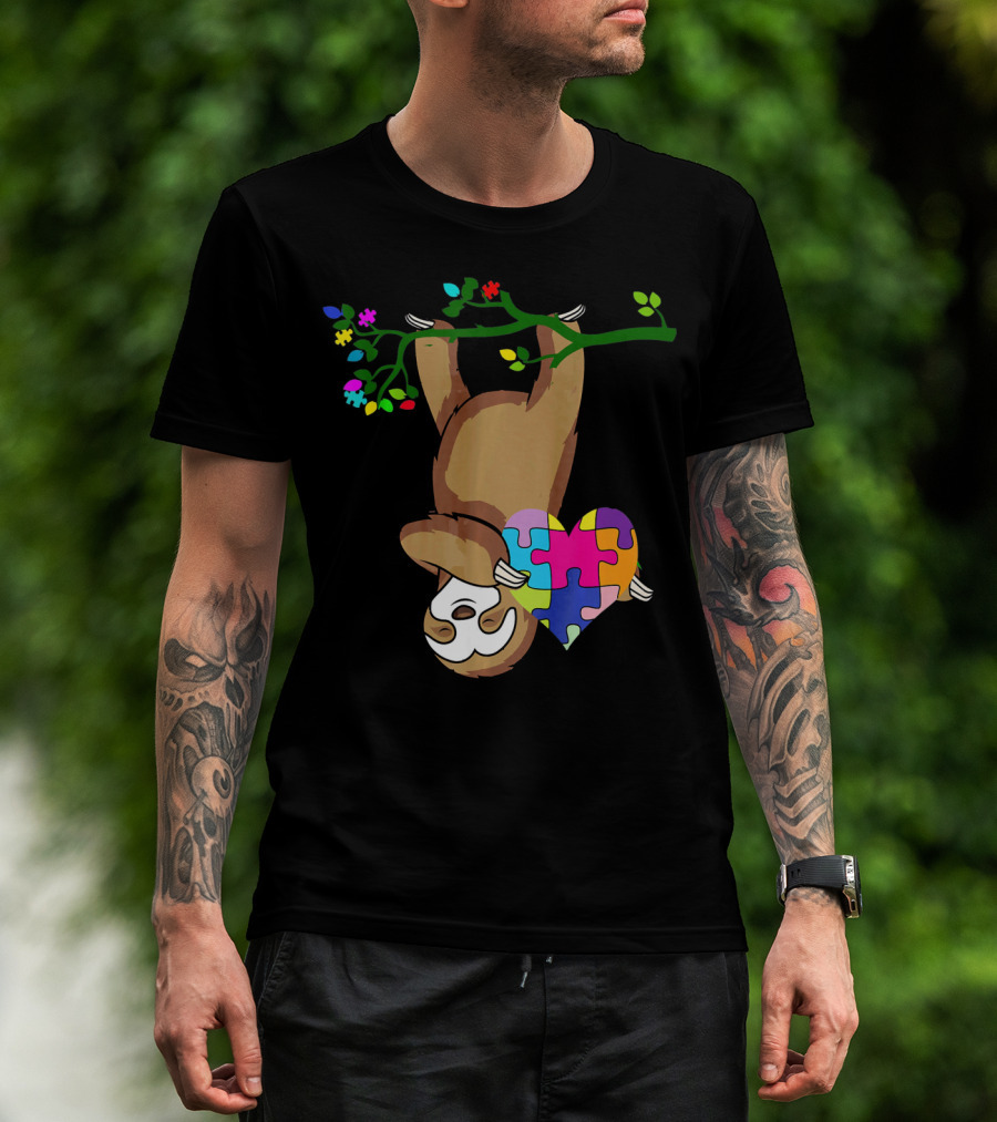 Sloth Love Autism Awareness Heart Puzzle T-Shirt