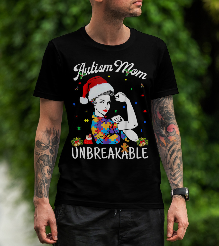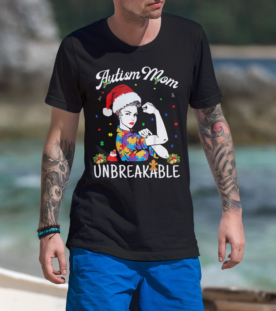 Autism Mom Unbreakable Santa Christmas Pride Puzzle Pieces T-Shirt