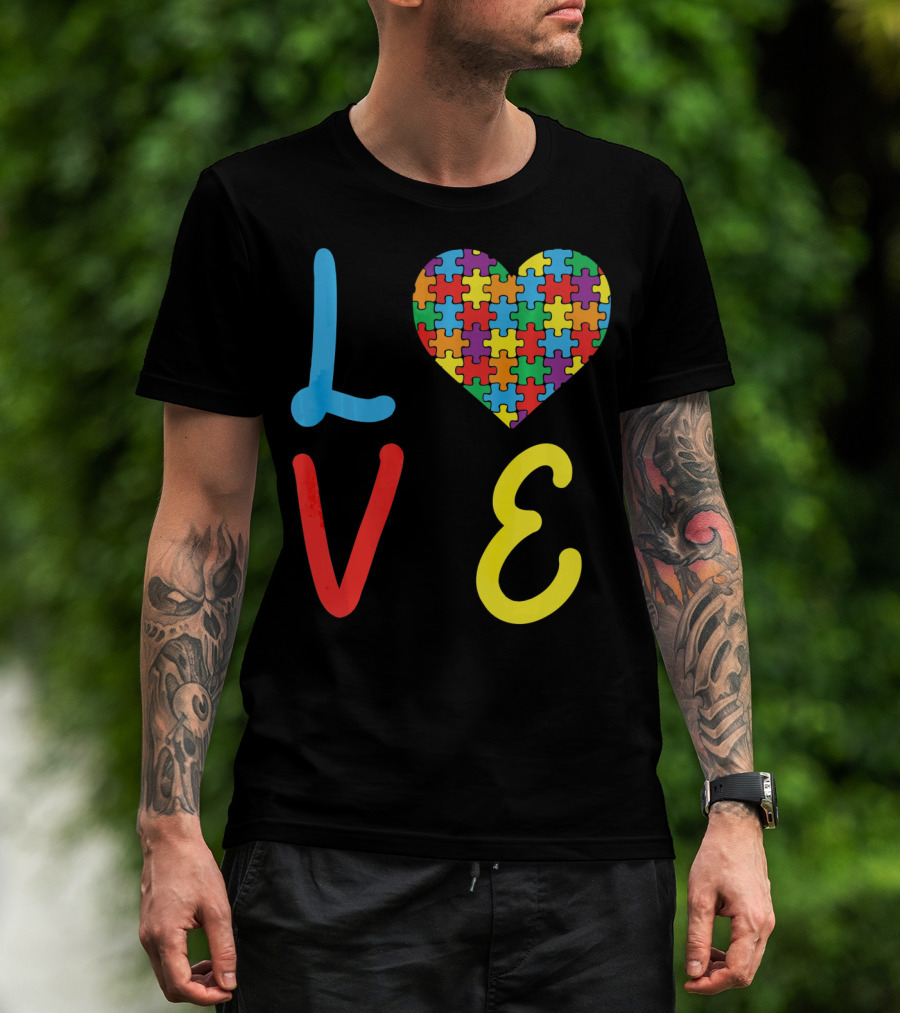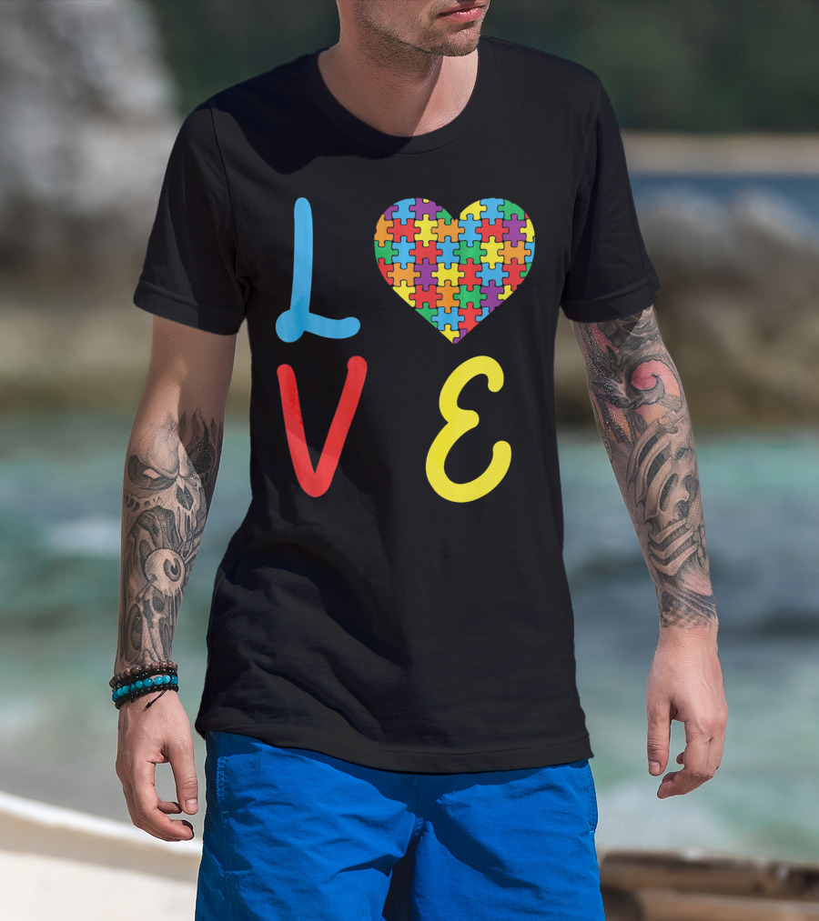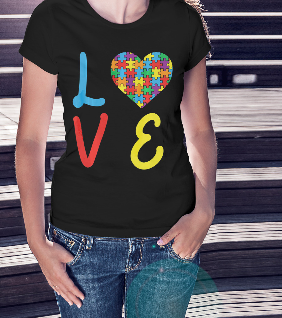 Love Autism Awareness Day Autism Puzzle Heart T-Shirt