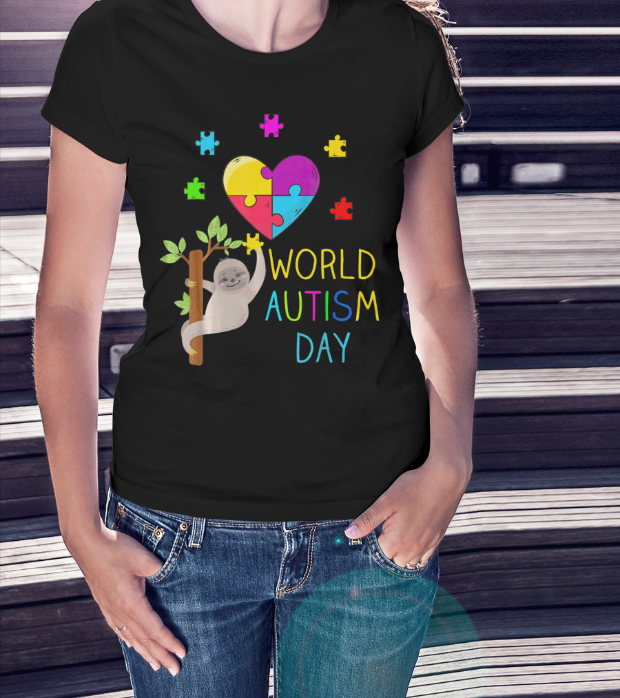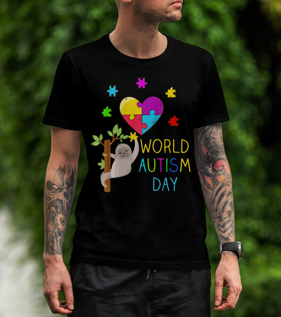 World Autism Day Sloth Heart Puzzle Pieces T-Shirt