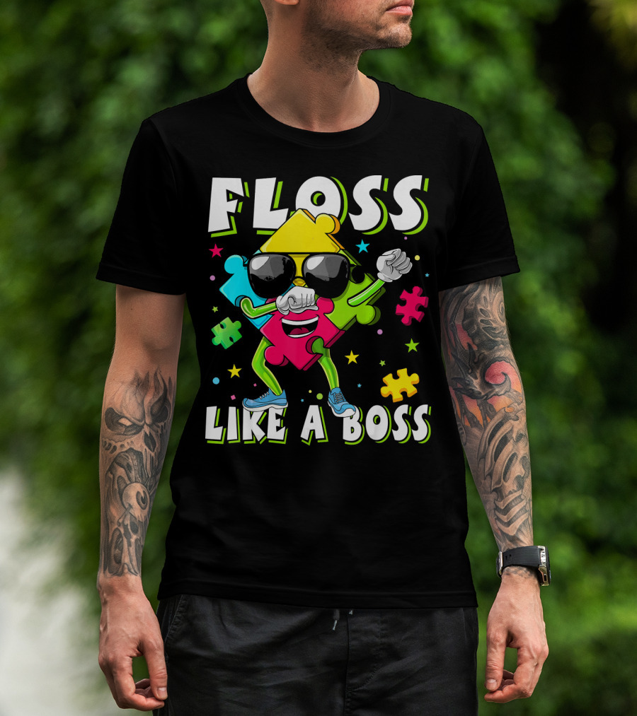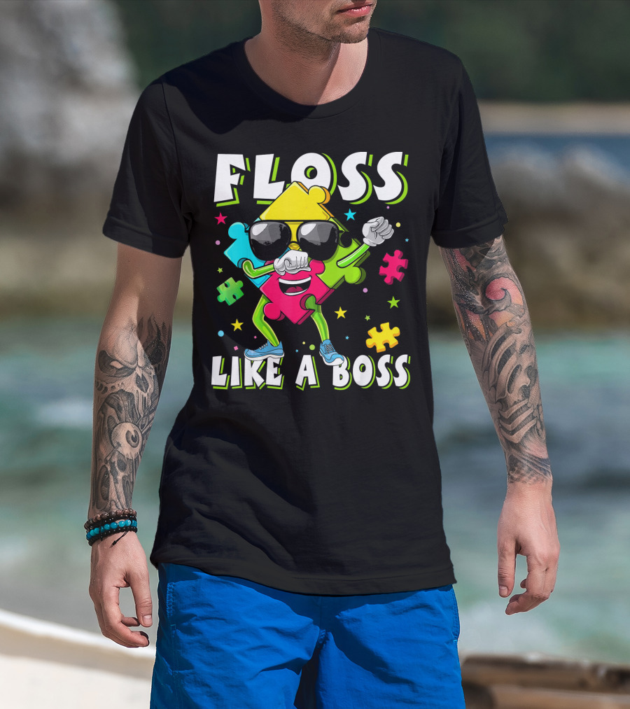 Floss Like A Boss Autism Awareness Puzzle Dance T-Shirt