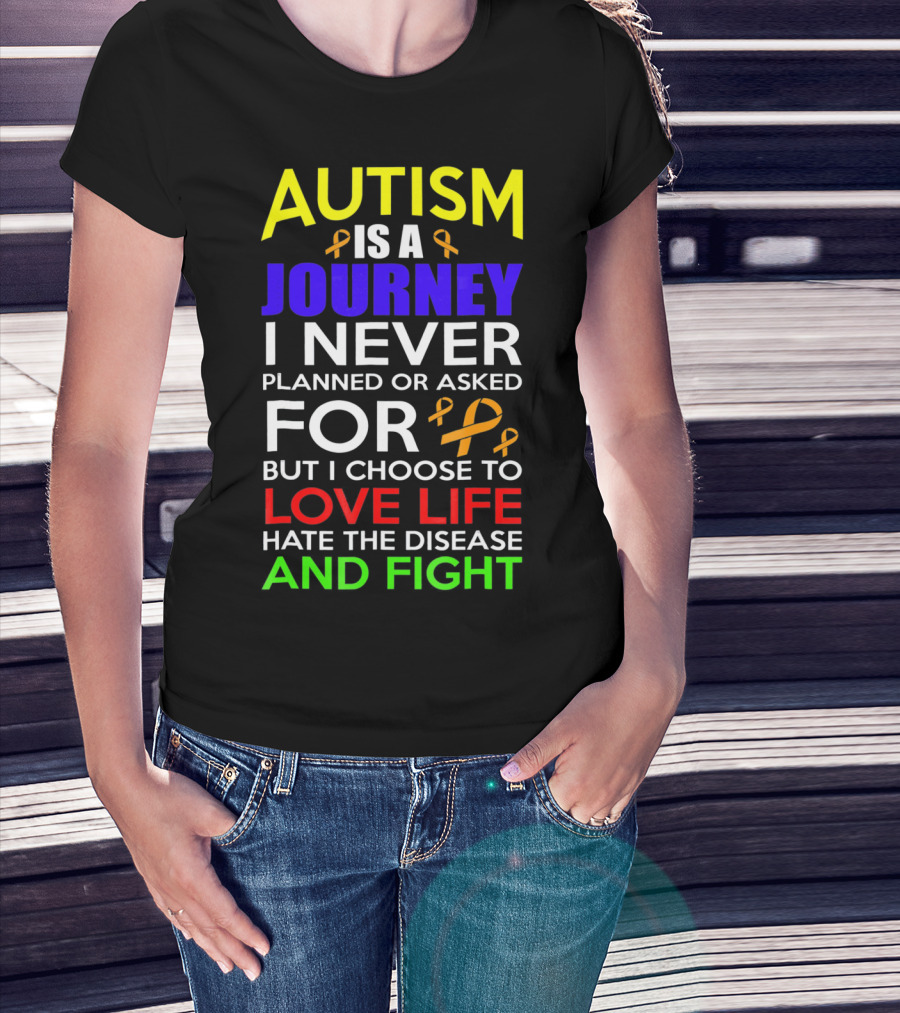 Autism Is A Journey I Never Planned Or Asked For But I Choose To Love Life Hate The Disease And Fight T-Shirt