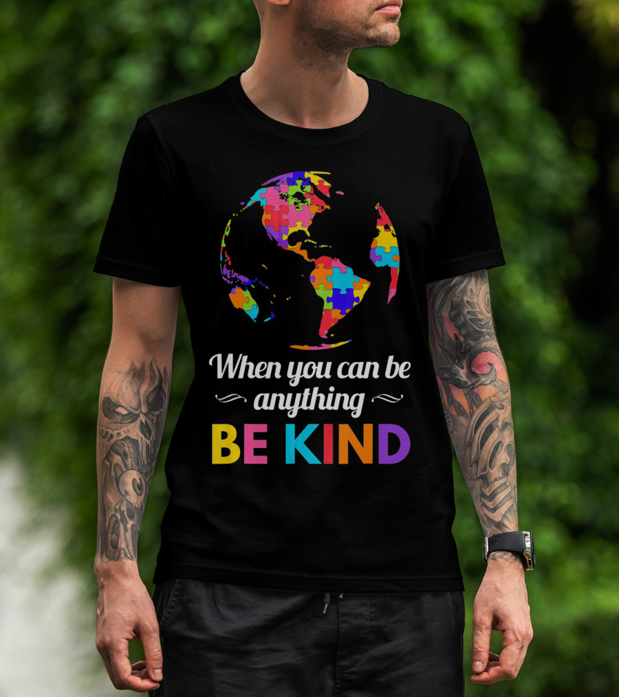 When You Can Be Anything Be Kind Autism Awareness Puzzle Globe T-Shirt
