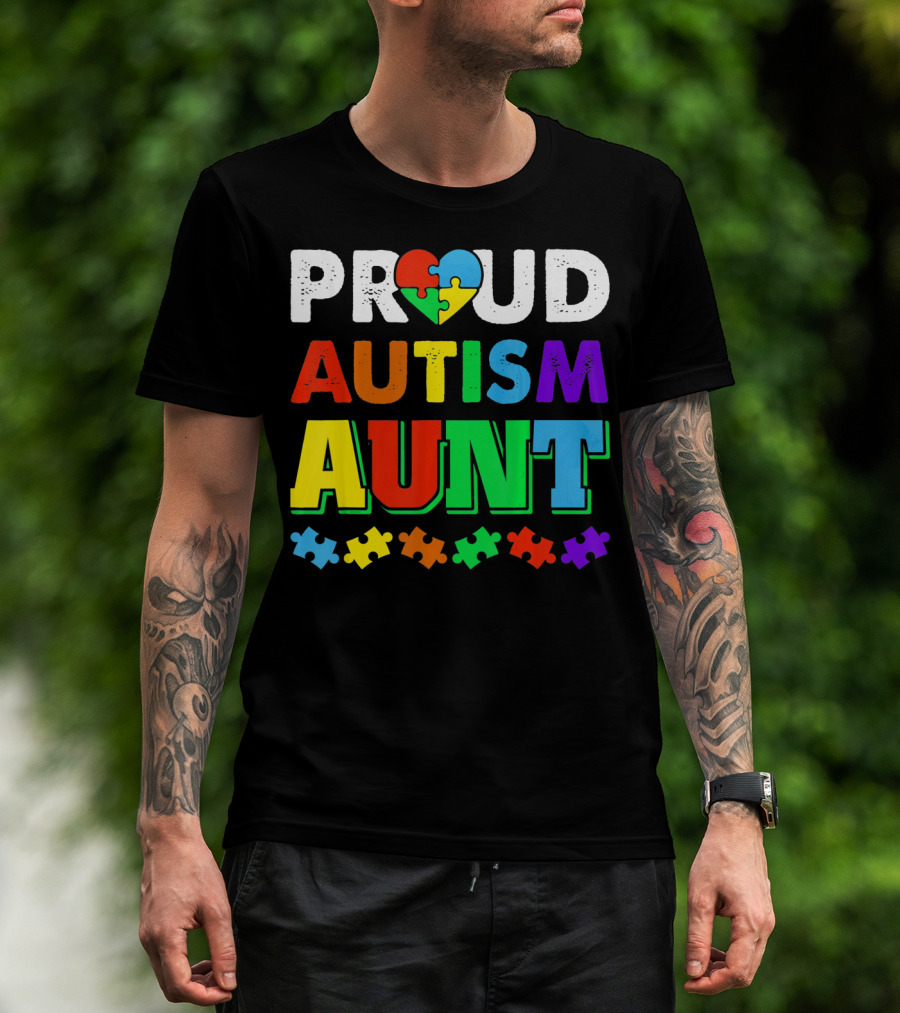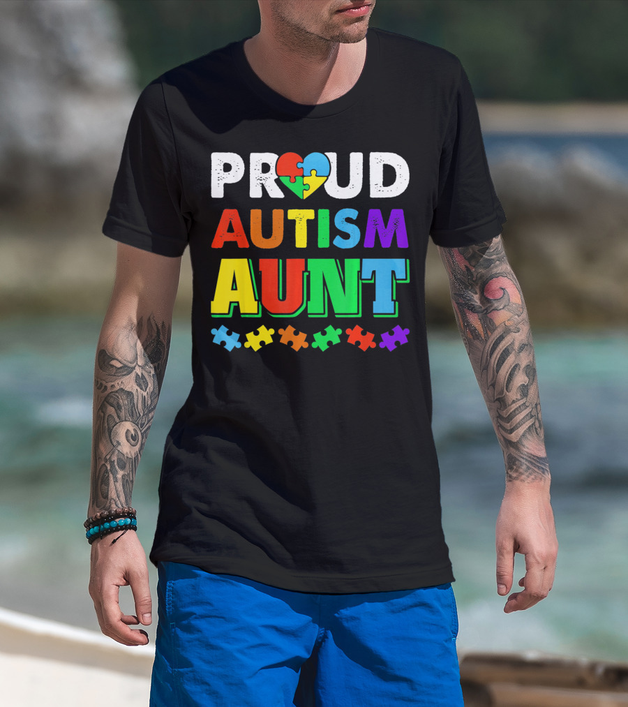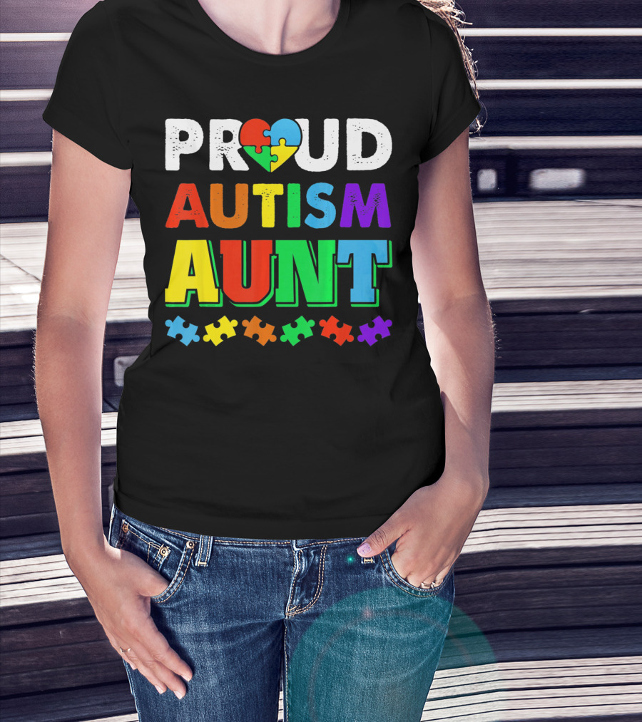 Proud Autism Aunt Autism Awareness Puzzle Pieces T-Shirt