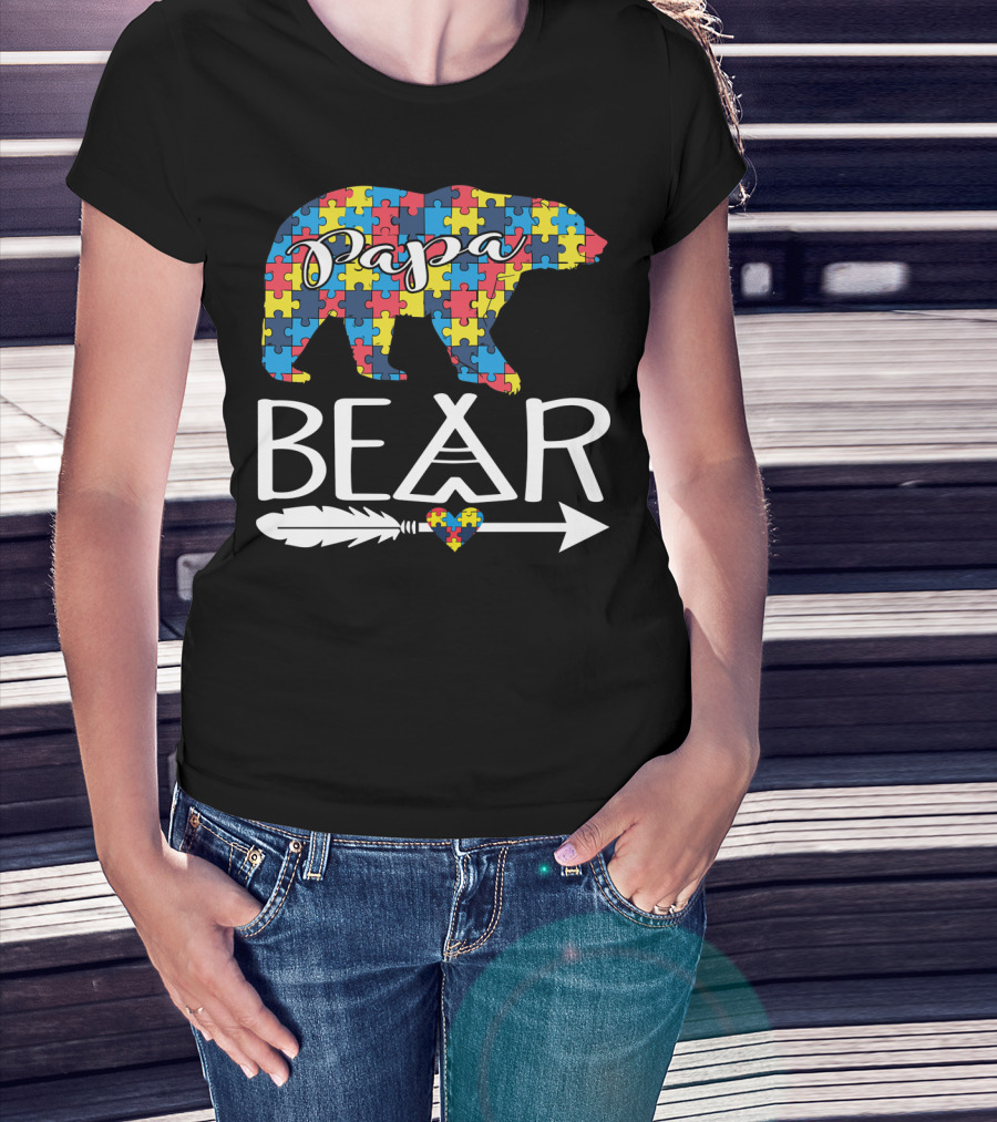 Papa Bear Puzzle Heart Autism Awareness T-Shirt