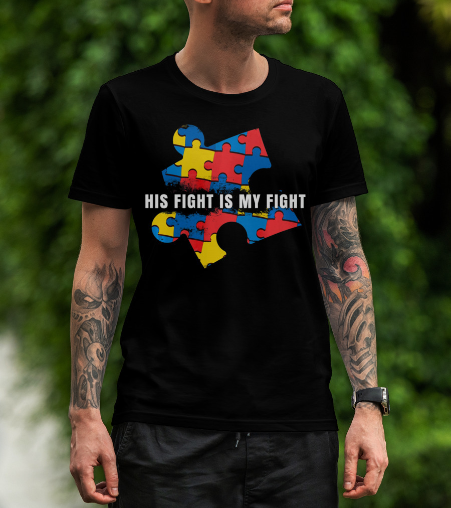 AUTISM AWARENESS MOM His Fight Is My Fight Puzzle Piece T-Shirt
