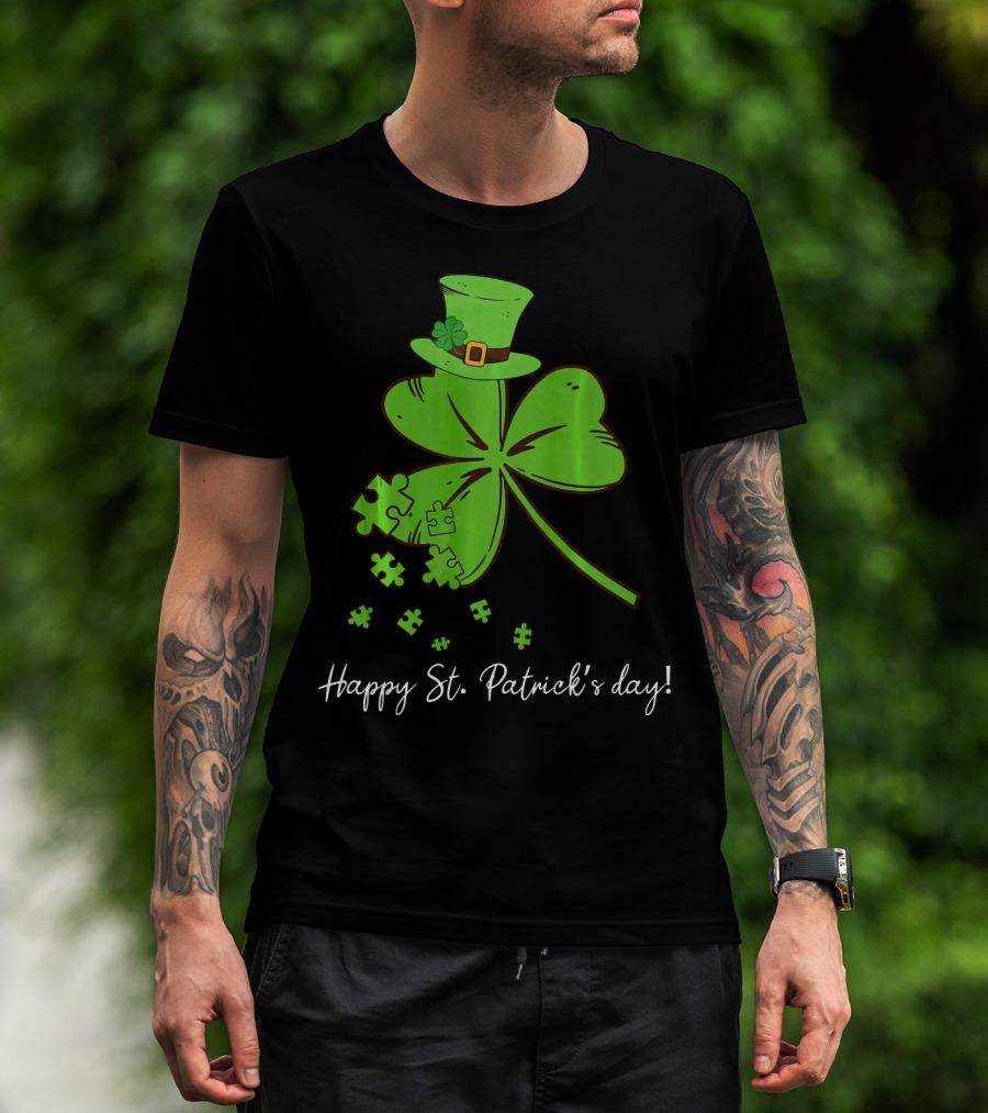 Happy St. Patrick's Day Puzzle Shamrock With Leprechaun Hat T-Shirt