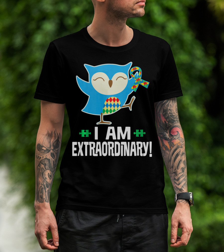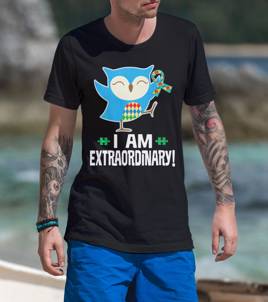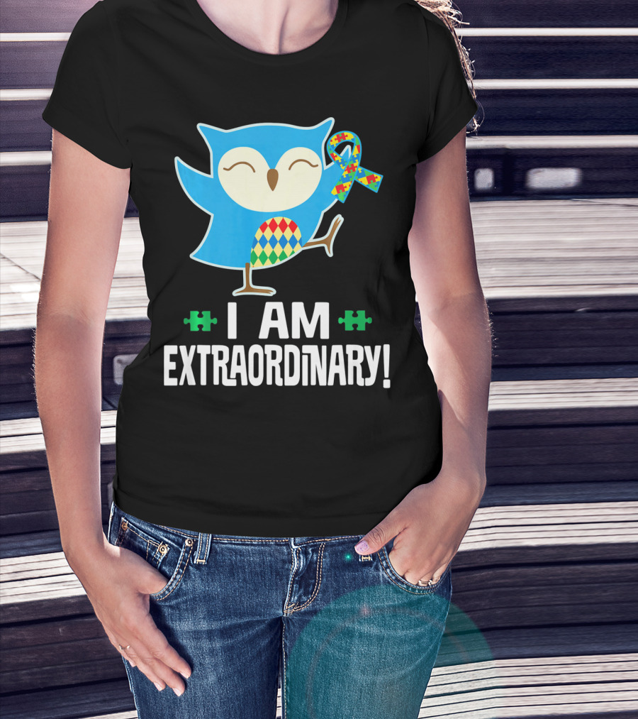 I Am Extraordinary Autism Awareness Autistic Spectrum Disor Puzzle Ribbon Owl T-Shirt
