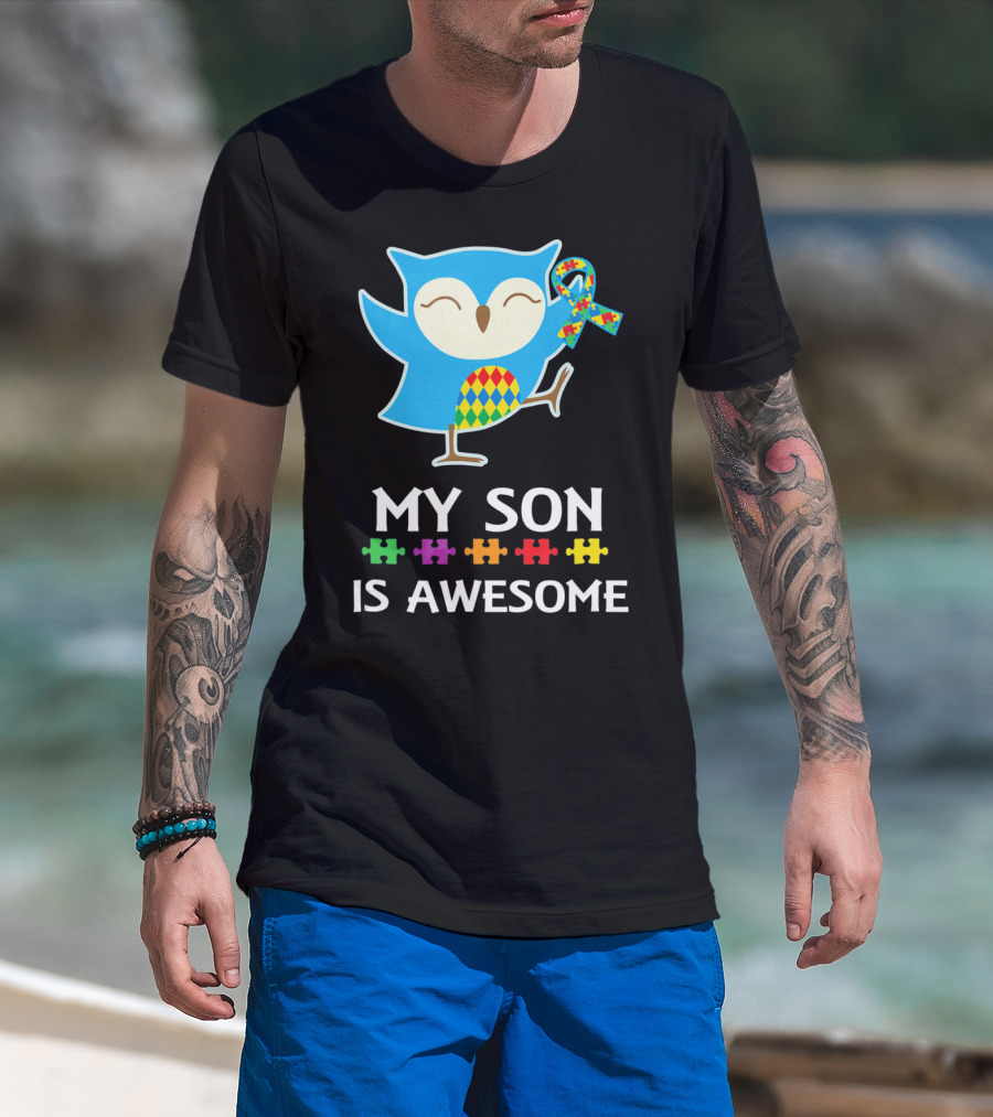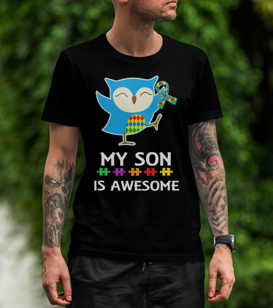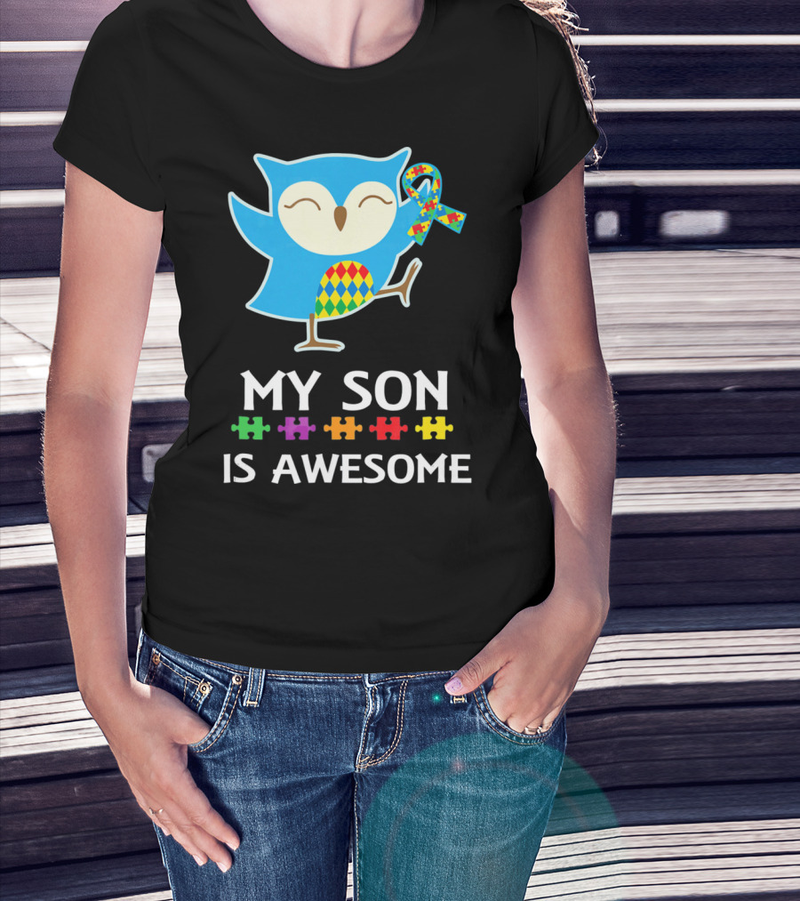 My Son Is Awesome Autism Awareness Owl With Puzzle T-Shirt