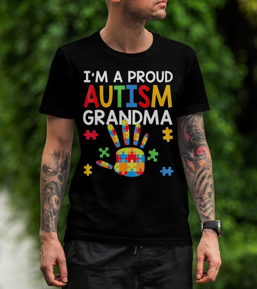 I'm A Proud Autism Grandma Puzzle Hand T-Shirt