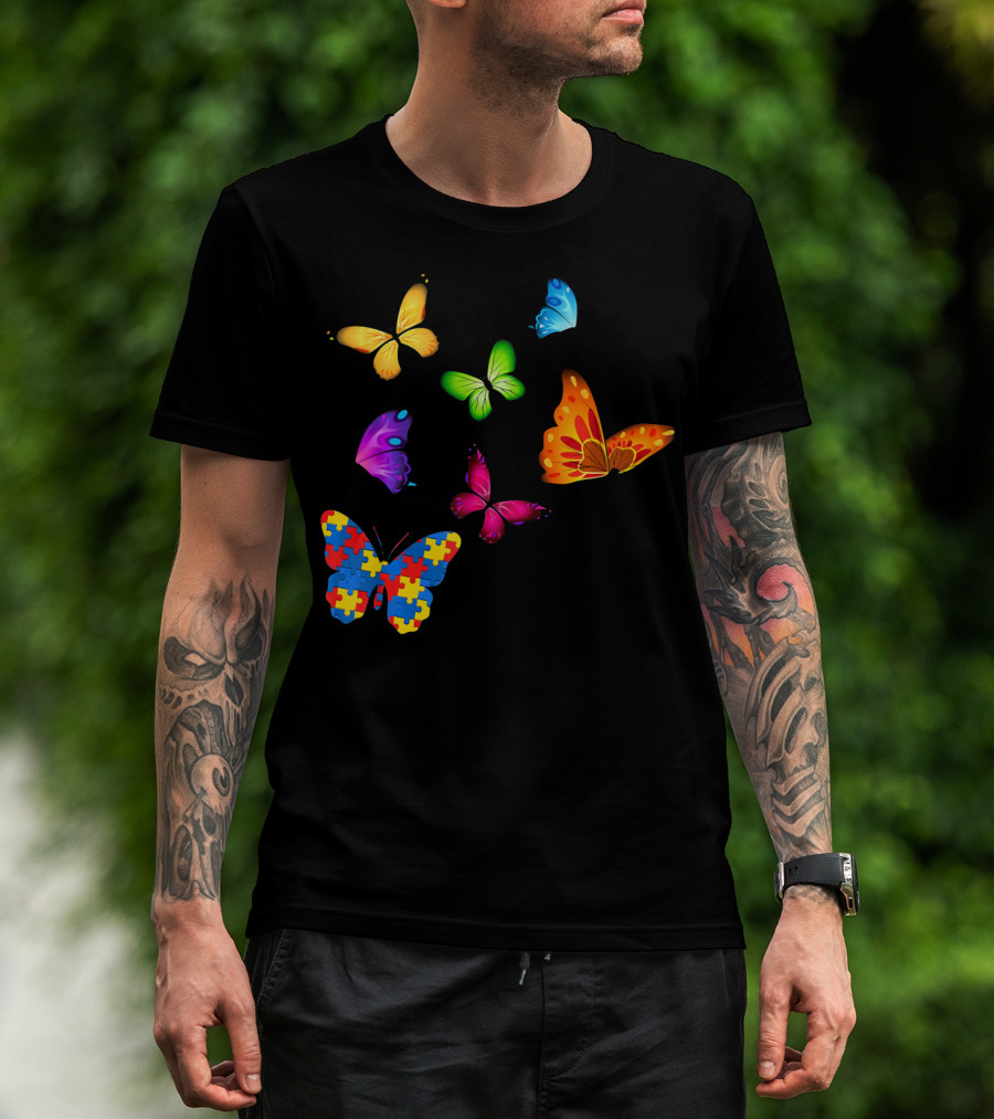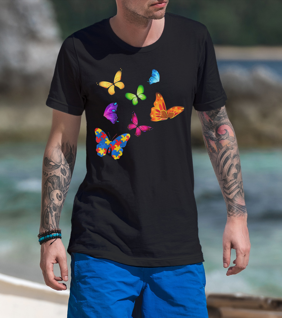 Autism Awareness Butterfly With Multicolored Puzzle T-Shirt