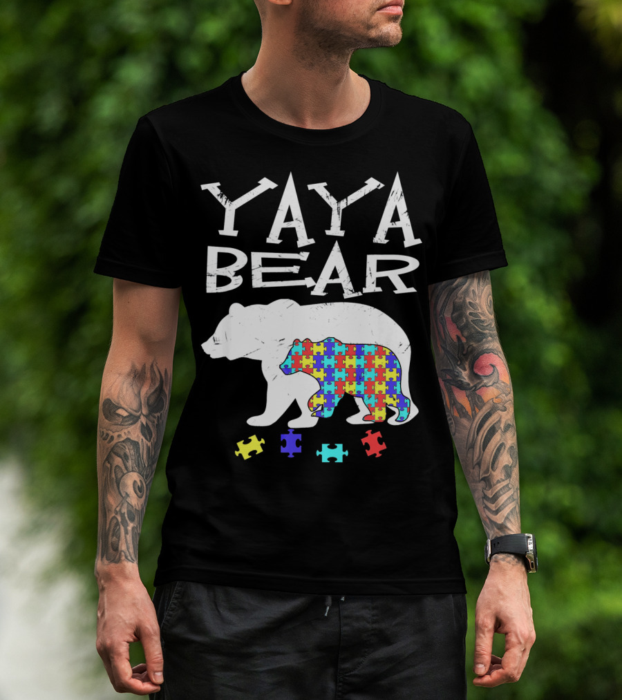 Yaya Bear Autism Awareness Puzzle Bear T-Shirt